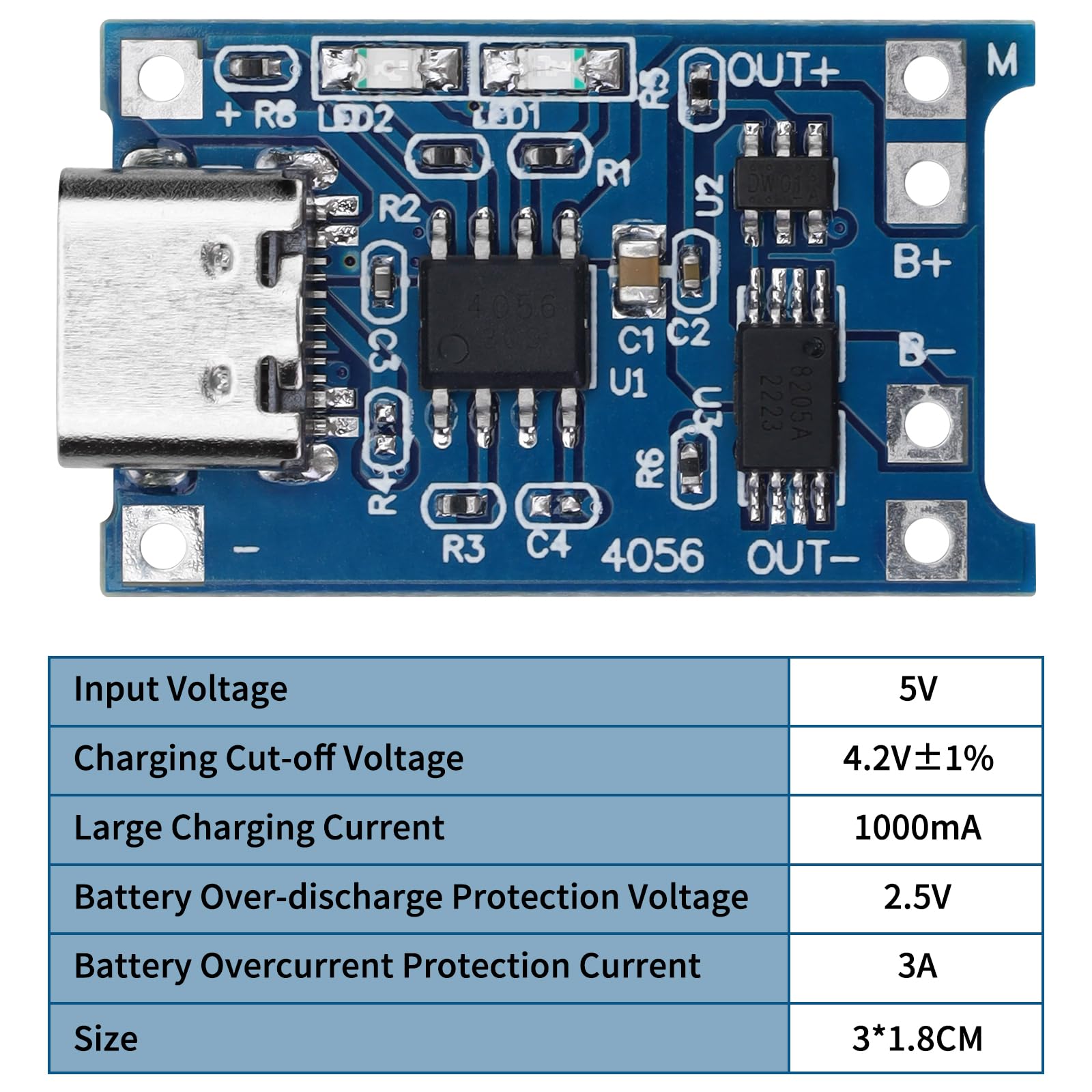 MakerFocus 15pcs TP4056 Charging Module Type C Interface with Battery Protection 18650 BMS 5V 1A 18650 Lithium Battery Charging Board