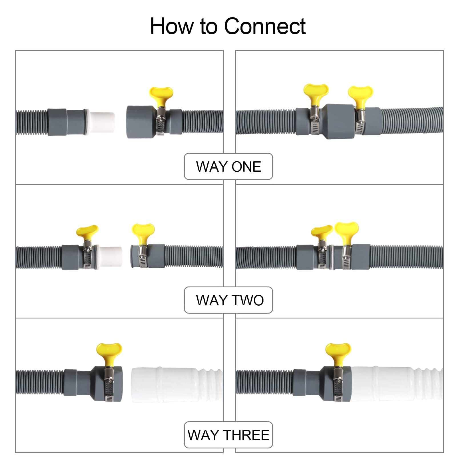 - Easy to Install: just insert the forming outlet into the end of the hose without any tools. If you are using it for extended hose, simply connect the adapters and connect them without removing the previously connected drain. For even more fixing, you can also add a clamp.