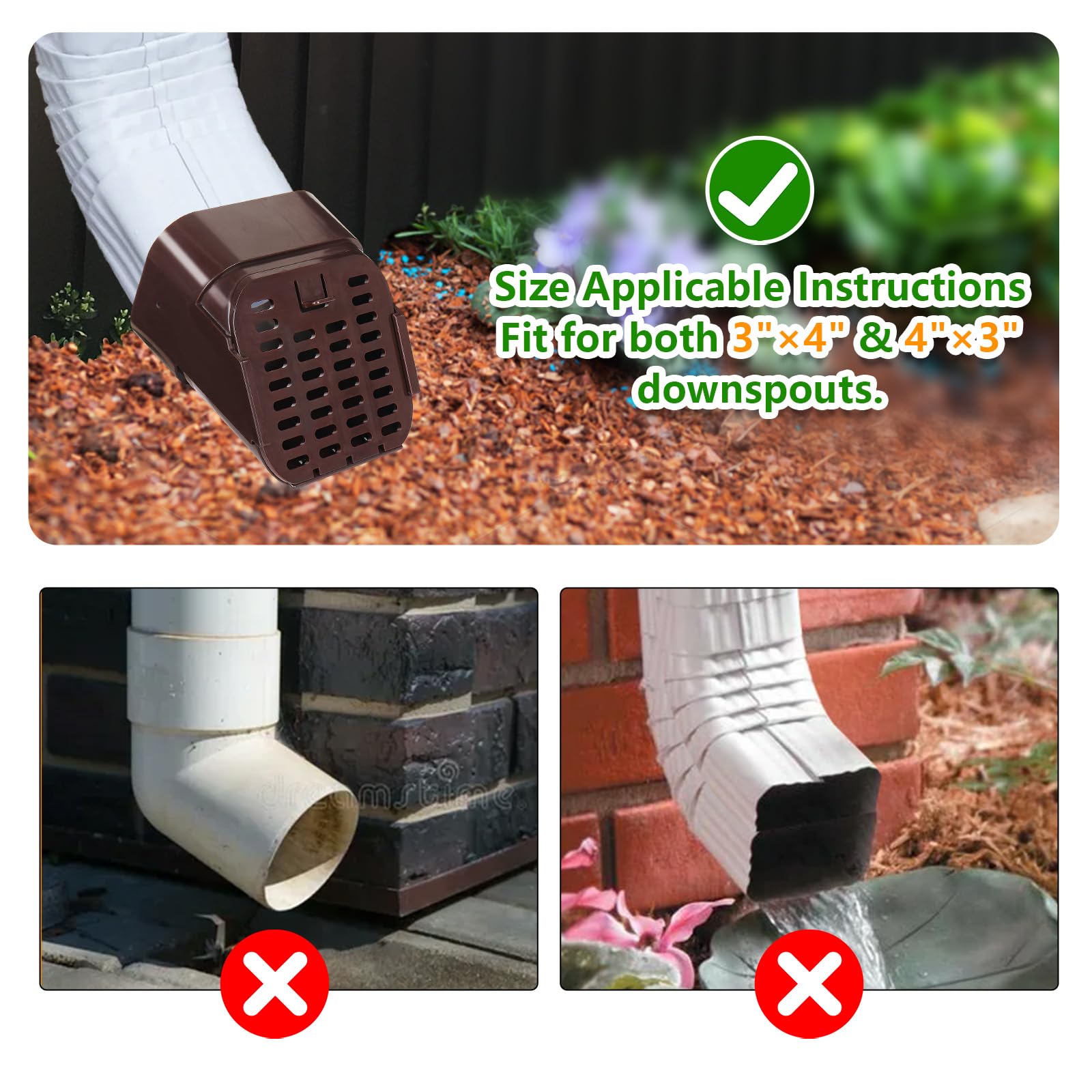 MARKBIT 3"x4" Type-A Gutter Downspout Extensions,Gutter Downspout Extensions,Downspout Diverter, Fit for The Bottom of 3 inch x 4 inch downspouts (1, Brown)