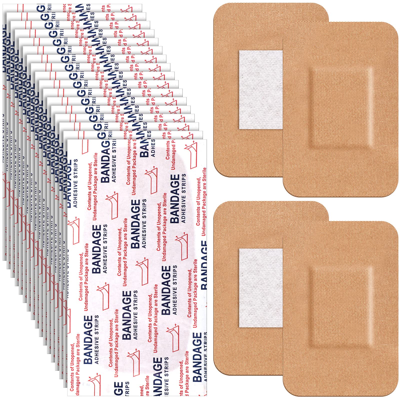 Marsui 100 Pcs Large Adhesive Bandages 2 x 3 Inch Wound Care Supplies Fabric Adhesive Strip Patch Waterproof Fabric Flexible Bandage Wrap Gauze Pads for Skin Care and Protect Wounds