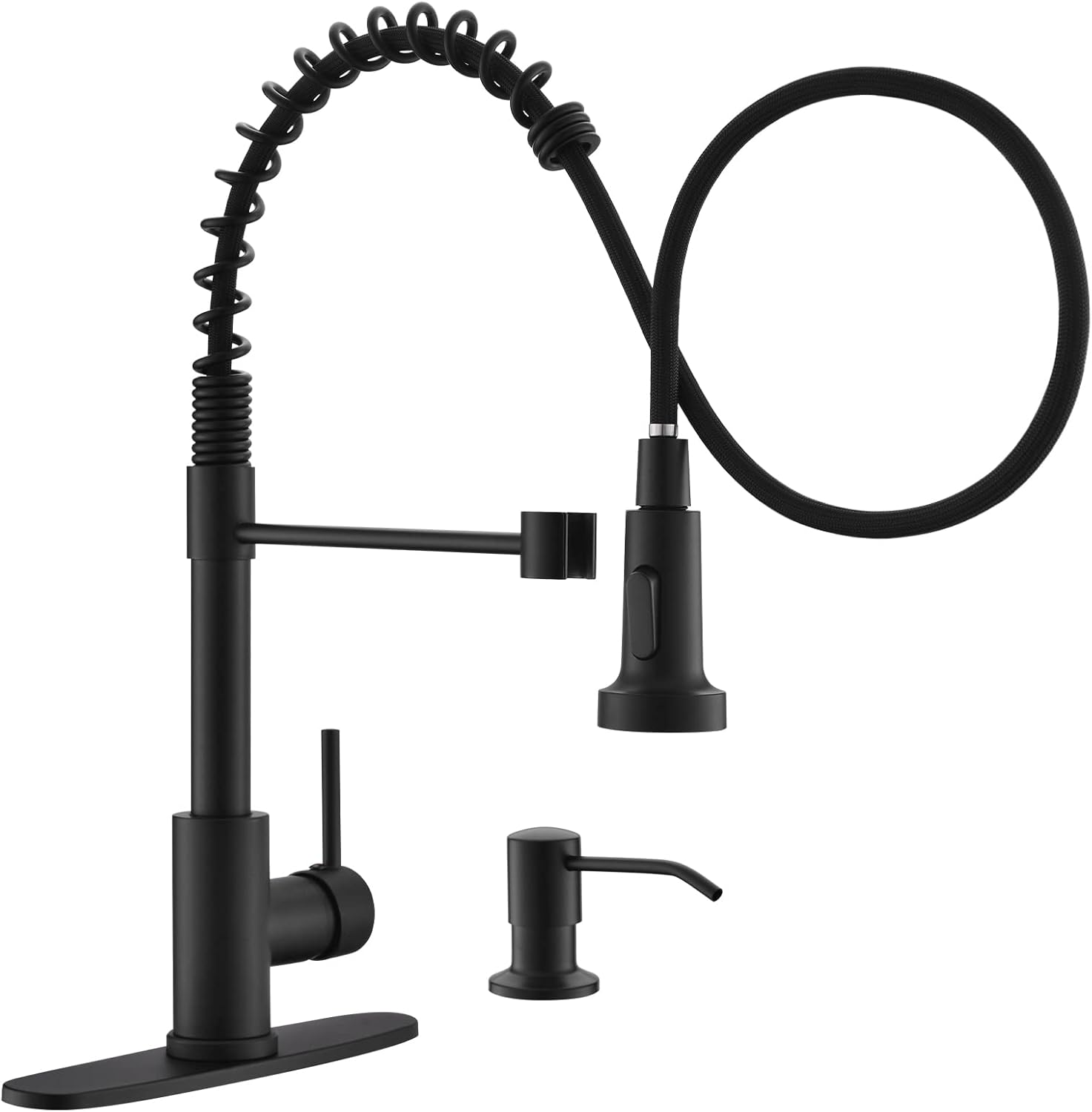 Matte Black Kitchen Faucet with Soap Dispenser - Commercial Single Handle Pull Down Sprayer