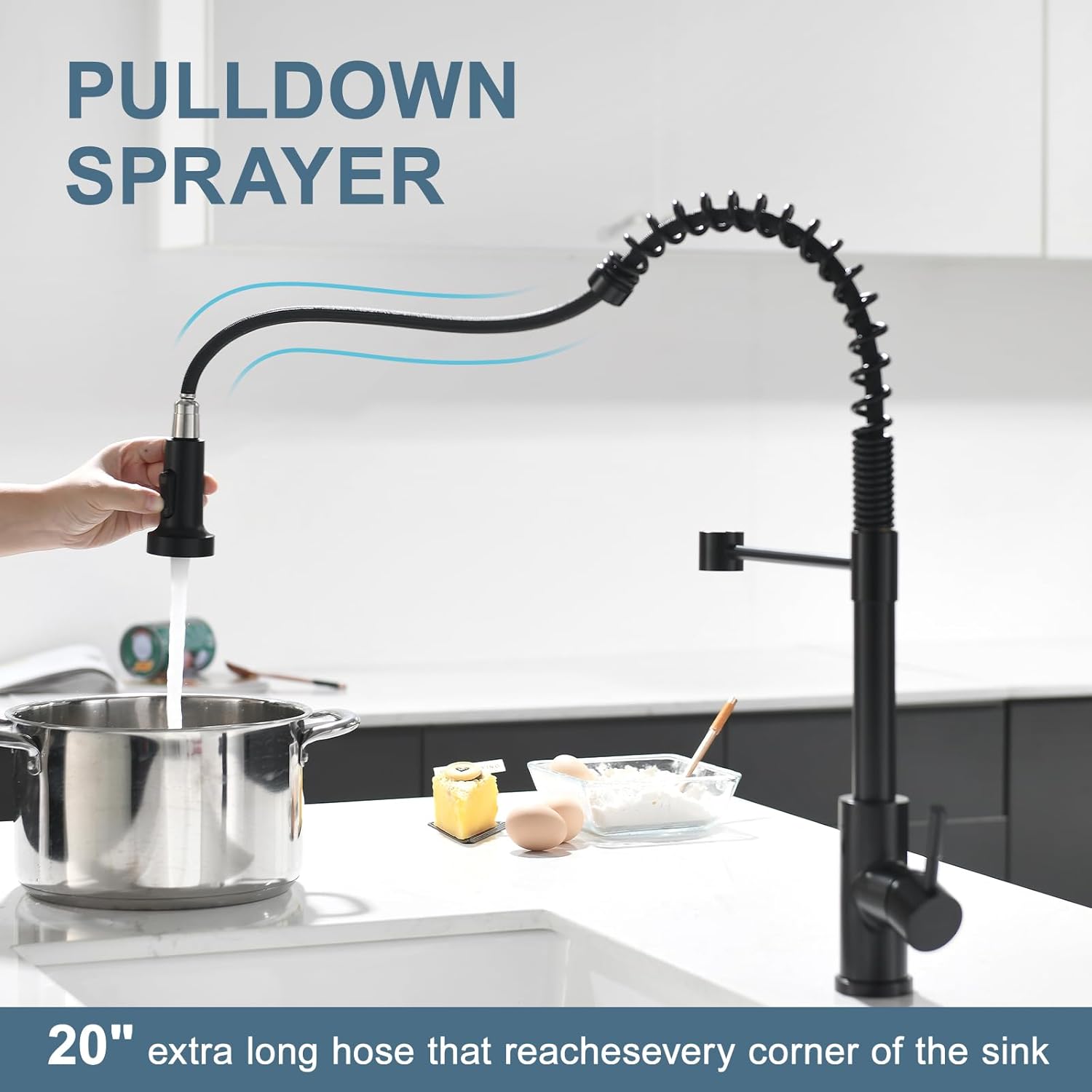 - Flexible to Operate: High arc 360 degree swivel spout for full sink access , pull down sprayer to avoid splashing. Single handle design, easy control of hot and cold water and flow volume