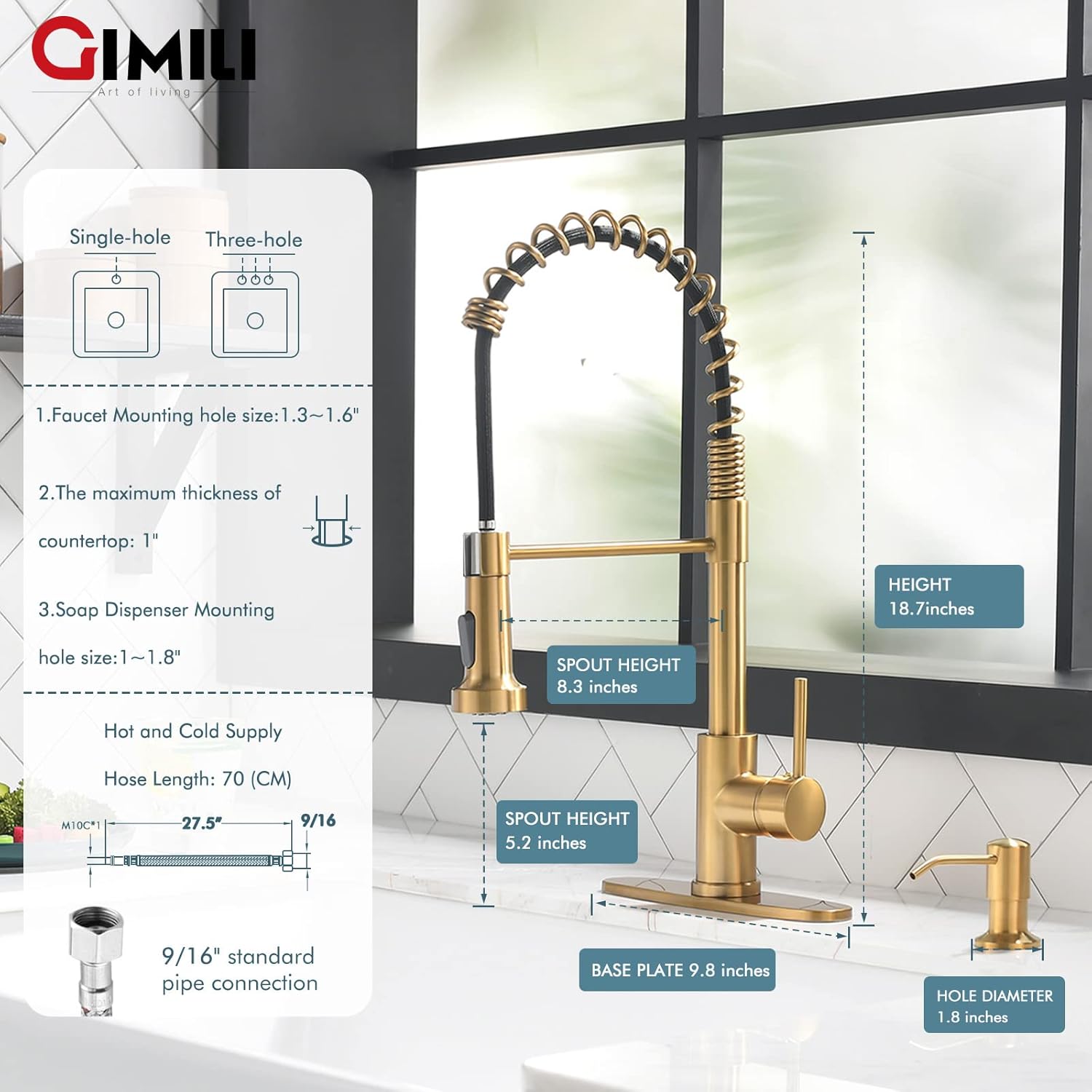 GIMILI kitchen faucet is easy to install, multi-functional and high-quality will make you believe that you have made the right choice and are a good helper for your kitchen.