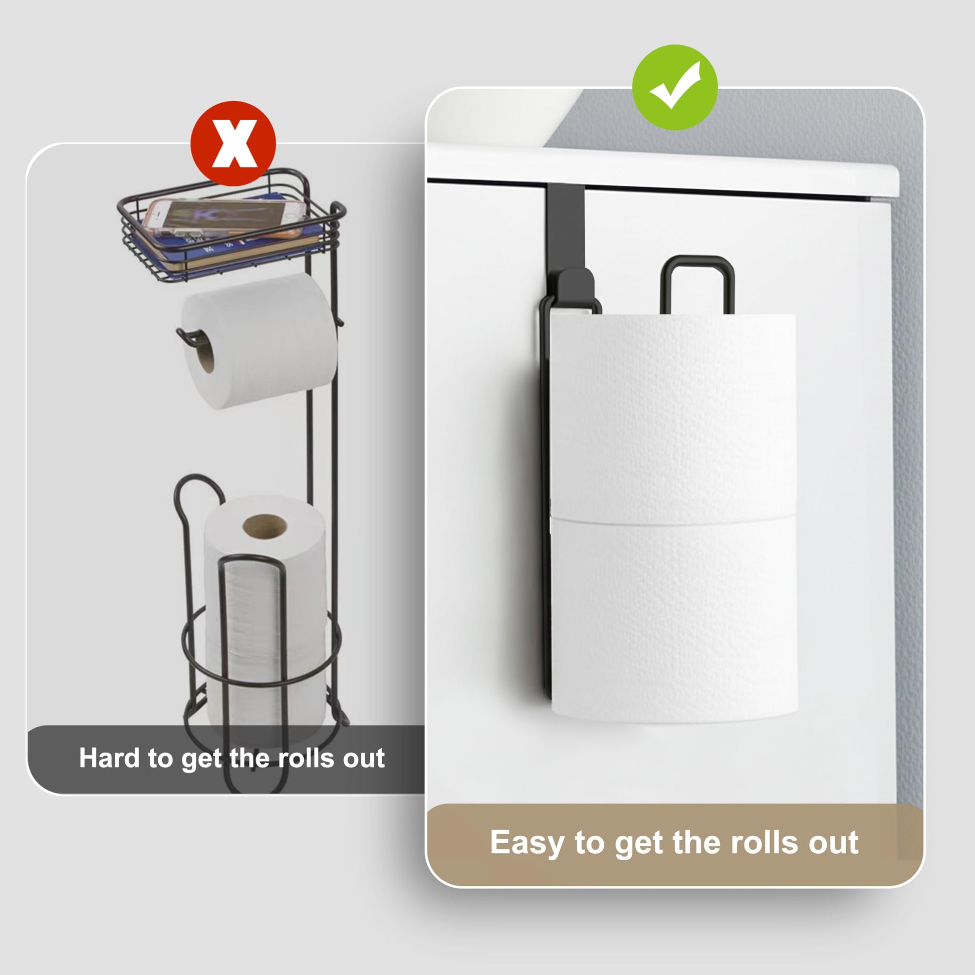 - 【Toilet Paper Storage】: Toilet paper holder can store extra tissue up to 2 mega rolls and hangs over the tank for quick access