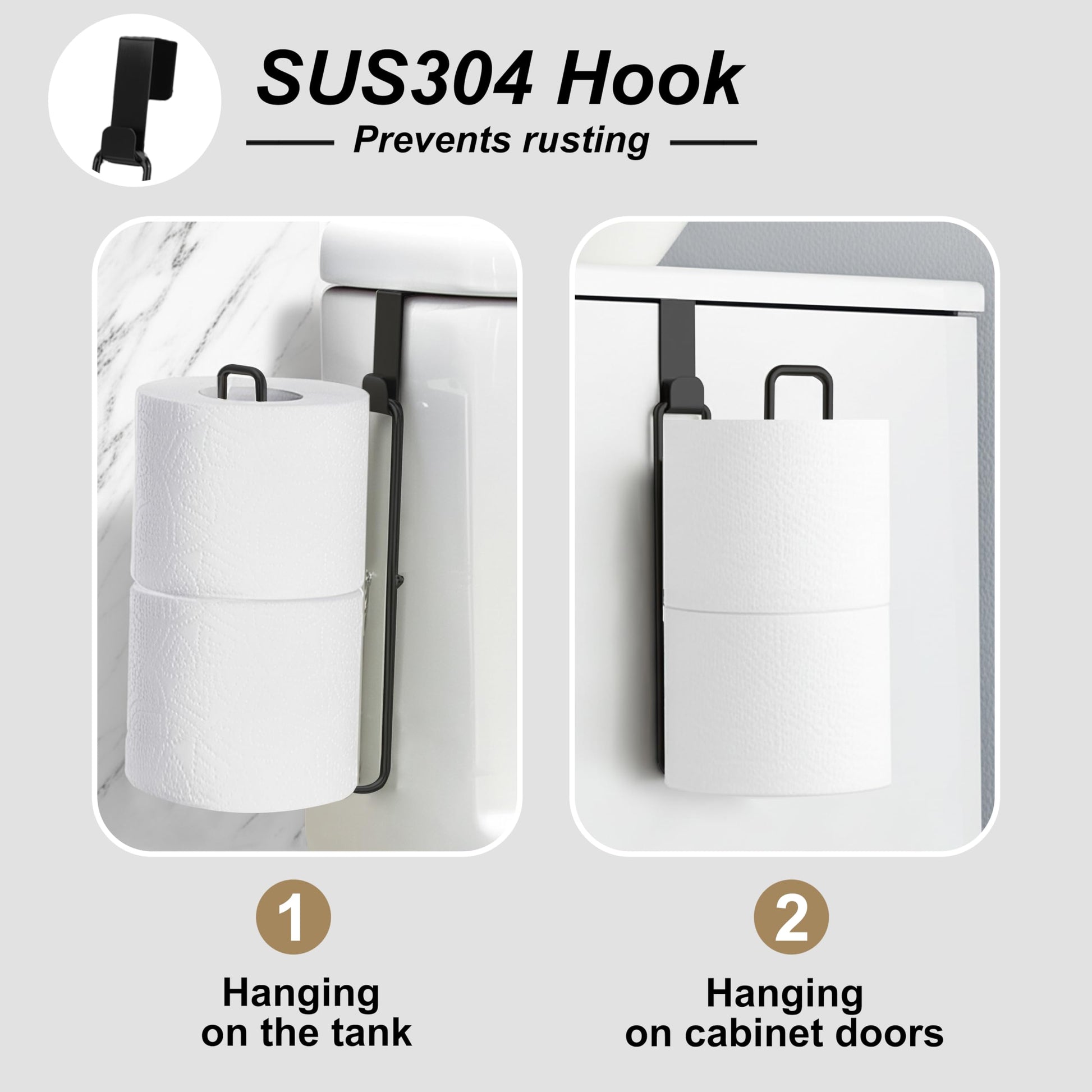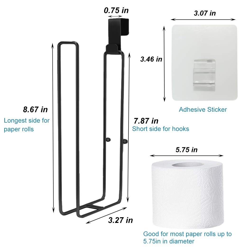- 【Two Mounting Methods】: With hook,the toilet paper holder can be hung on the toilet or bathroom cabinet door.A adhesive sticker for stick on any smooth wall