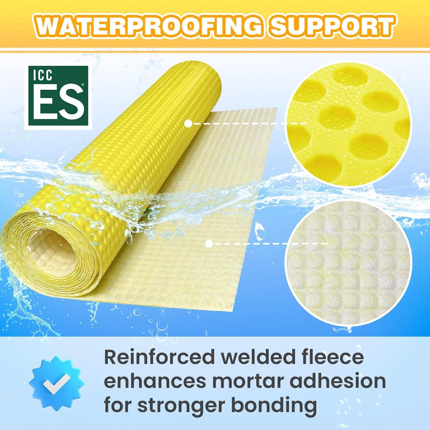MAXKOSKO 54 Sq.Ft. Uncoupling Membrane for Tile, 1/8''(3mm) Thick Waterproof Heated Flooring Underlayment Mat Tile Crack Prevention for Bathroom Shower Kitchen Basement