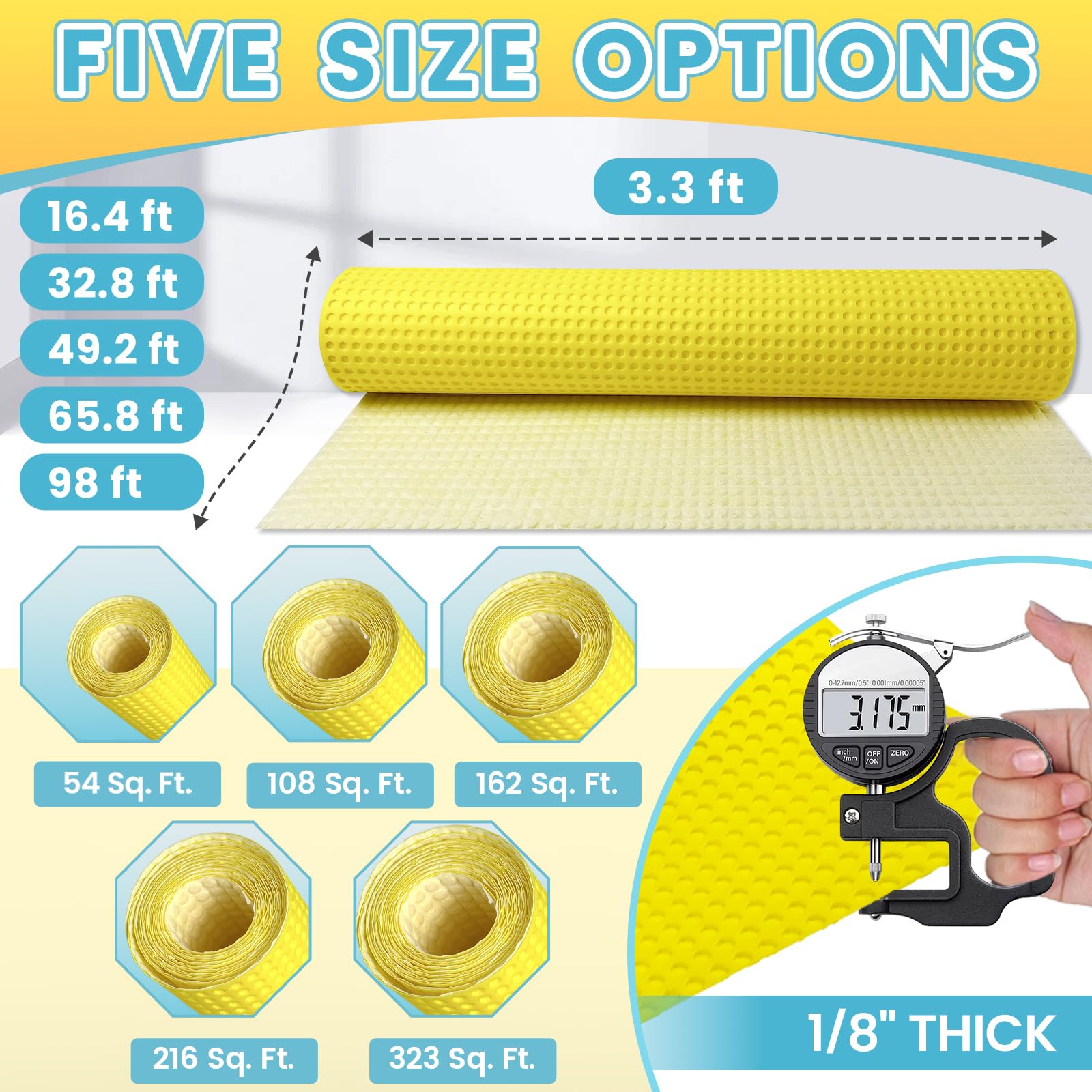 - Adjustable Sizing: 54 sq ft tile uncoupling membrane heated floor (1/8" thick, 3.3 ft x 16.4 ft) adjusts to your space with cut-to-fit ease, heat uncoupling membrane perfect for versatile vertical/horizontal setups, anchoring tightly in position