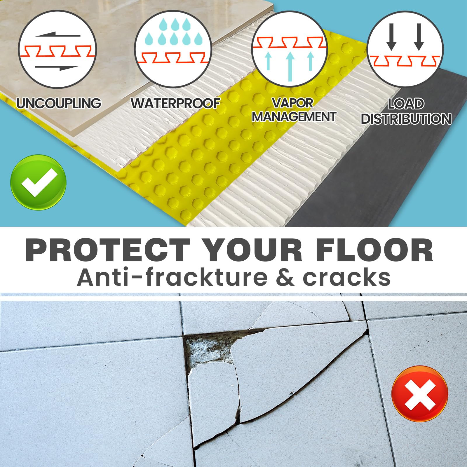 - Avoid High Repair Costs: MAXKOSKO under tile heated floor uncoupling membrane combines superior decoupling to prevent tile cracking by relieving tension, and uncoupling membrane for heated floors acts as a shield that defend against wet concrete