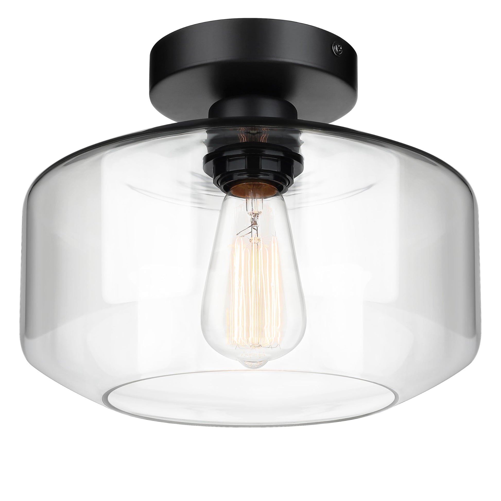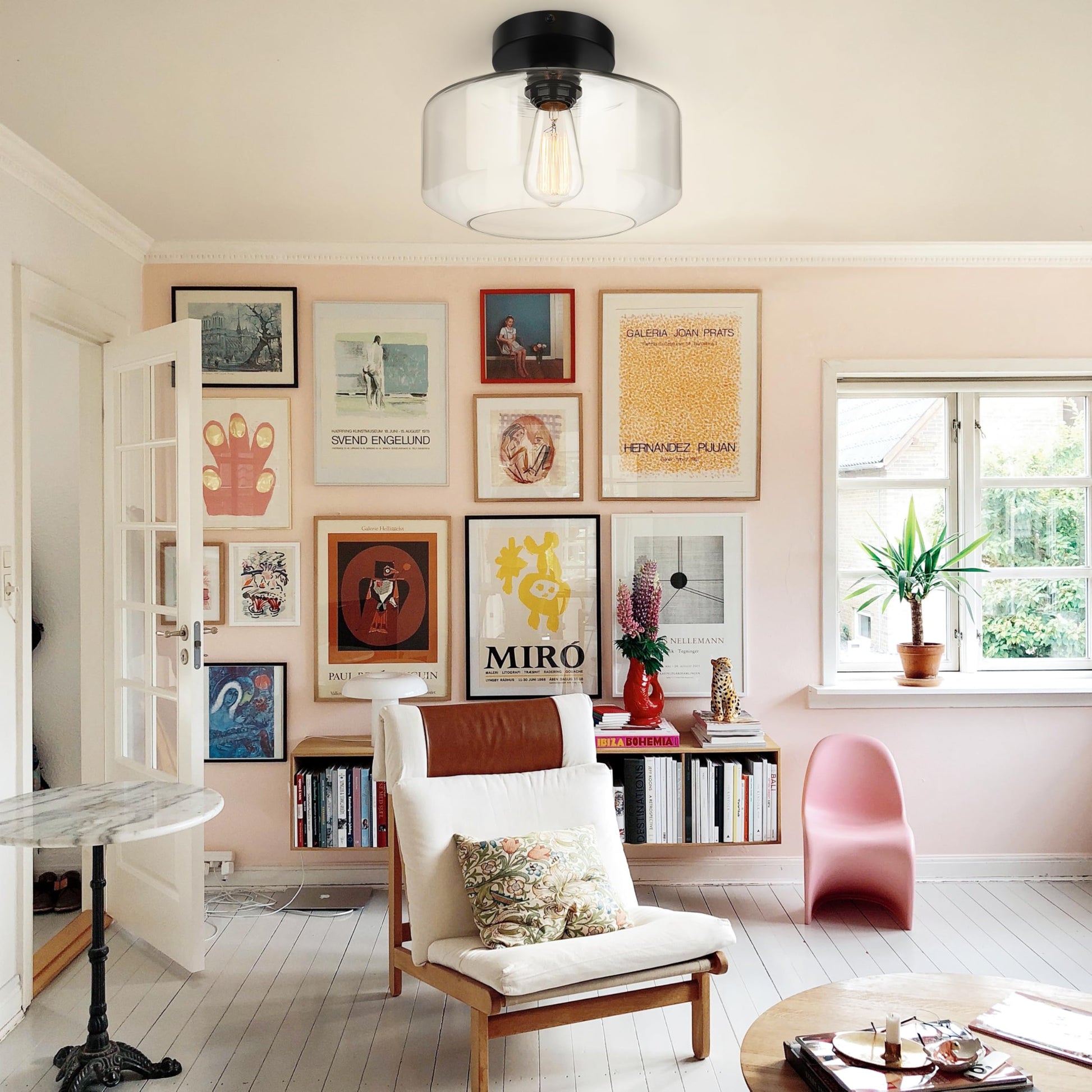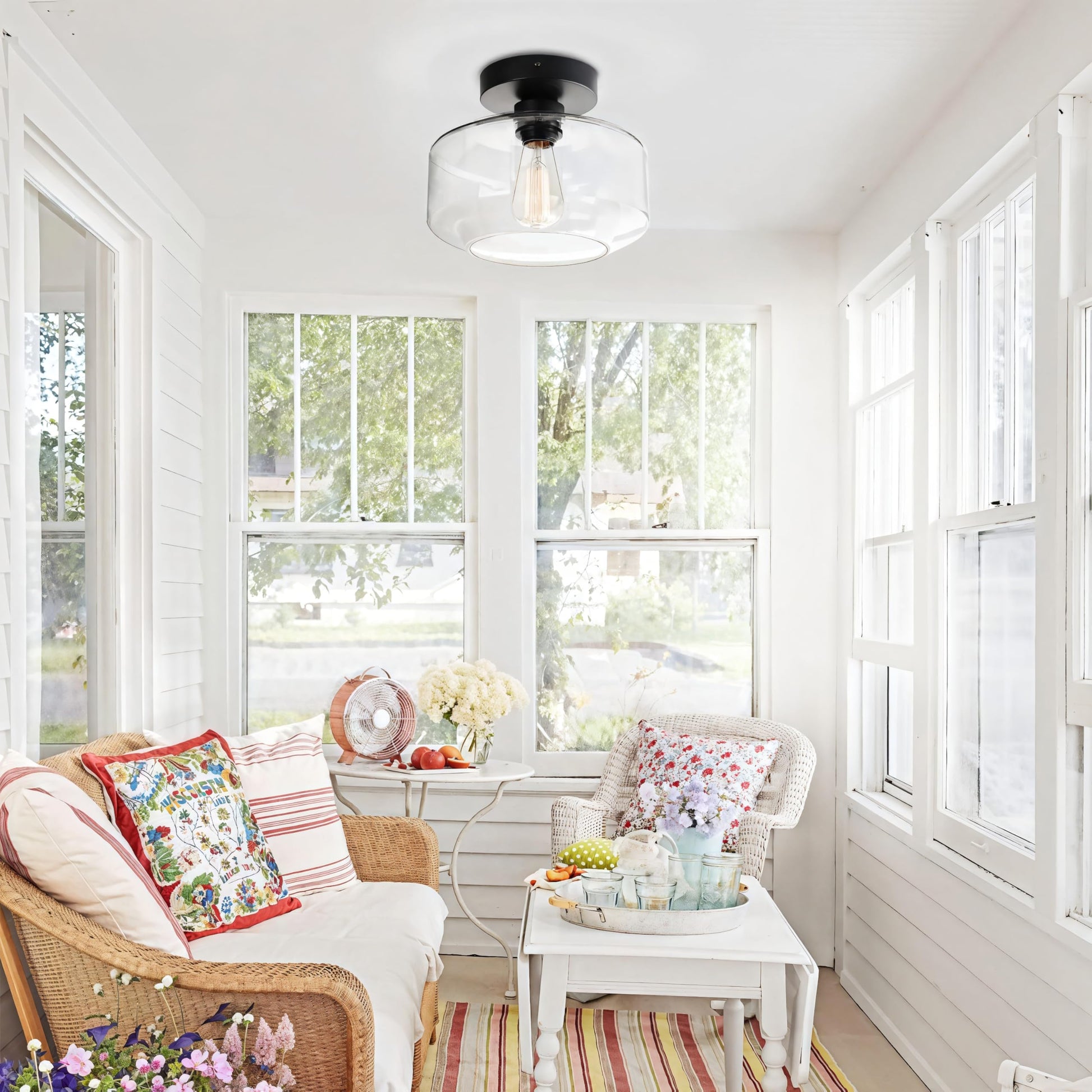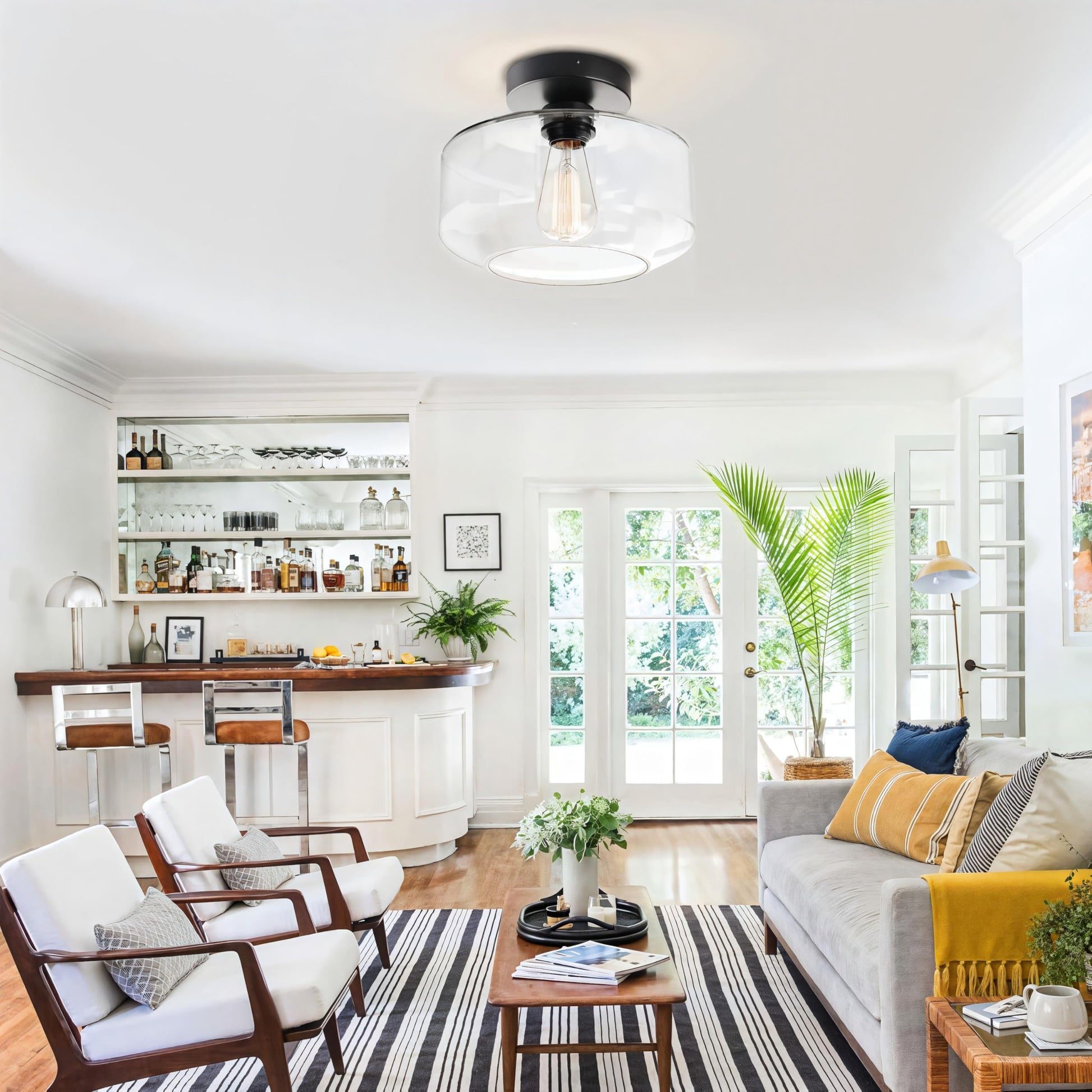 - Flush-mount Design & Vintage Style: The semi-flush mount light fixture features a unique clear glass shade and vintage style black matte metal base. The interior hallway light fixtures with glass shade diffuse a cozy glow for an inviting feel and offer a modern & vintage style while complementing your home decor.