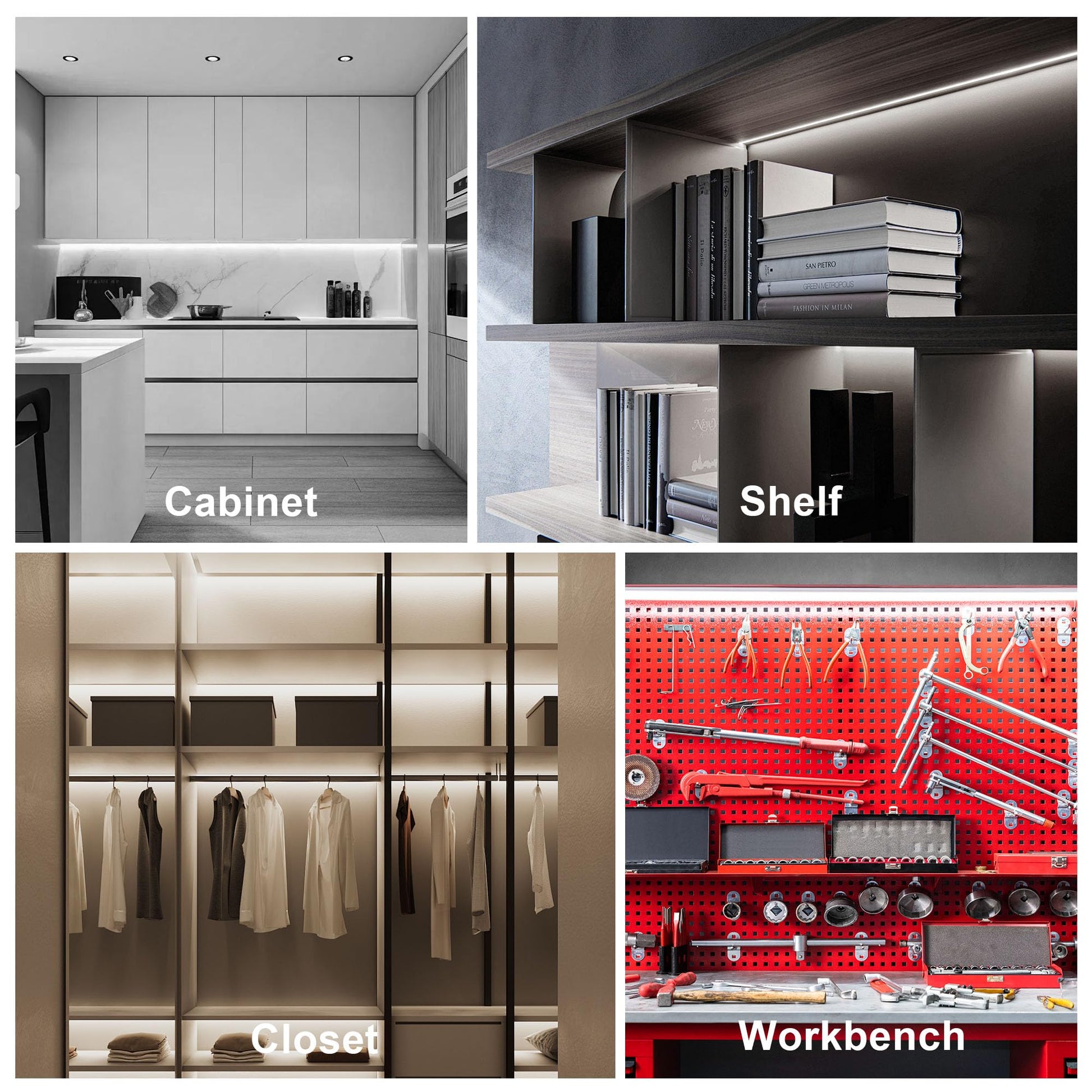 - Versatile Use in Kitchen, Cabinet, Closet & More: Perfect for hardwired kitchen lighting, this LED strip is also great for under cabinet lighting in closets, shelves, garages, or workspaces. Create a clean, modern look while enhancing visibility in dark areas