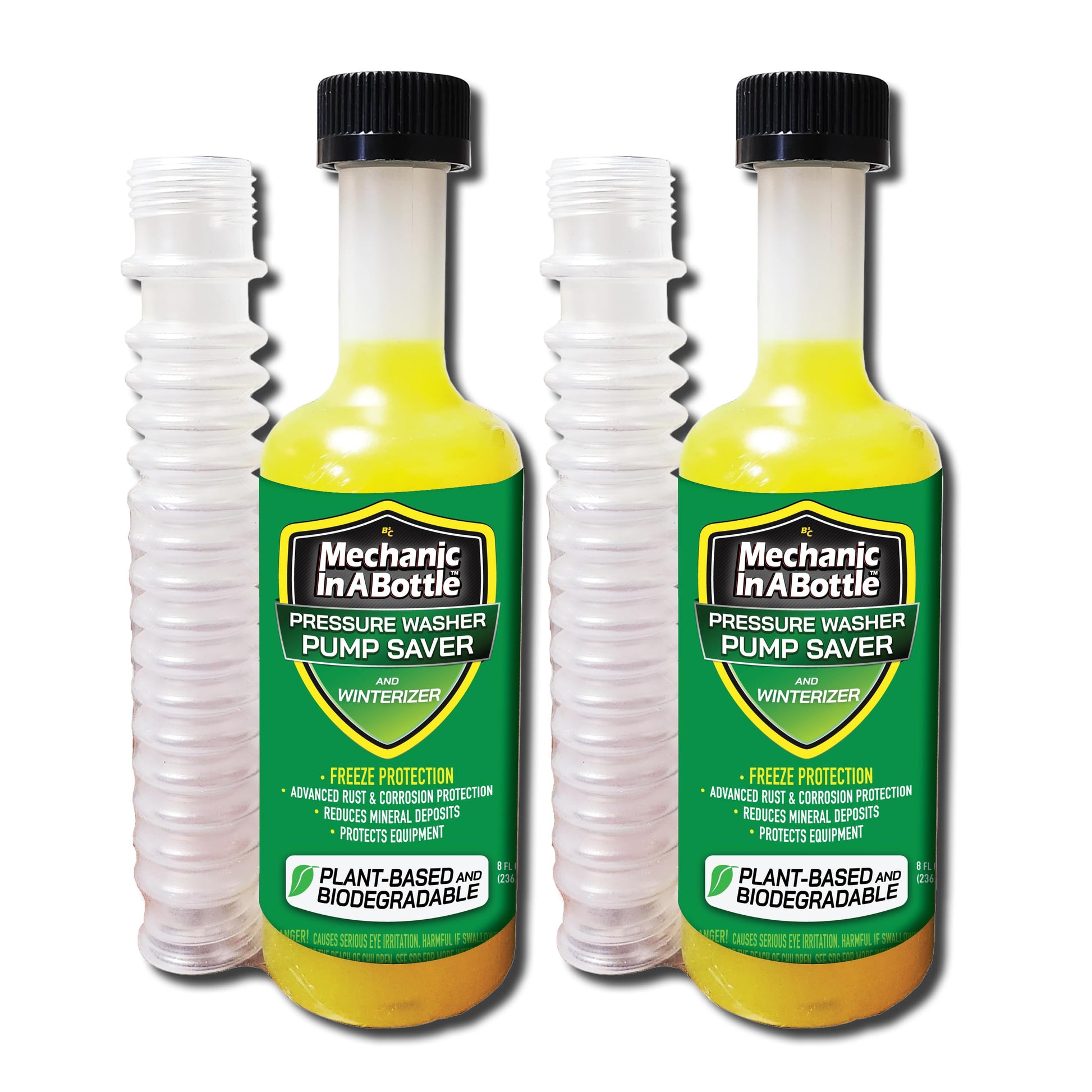 Mechanic in a Bottle Pressure Washer Pump Saver and Winterizer. Advanced Rust & Corrosion Protection, Reduces Mineral Deposits, Protects Equipment. 8 oz with Flexible Pour Hose - 2 Pack.