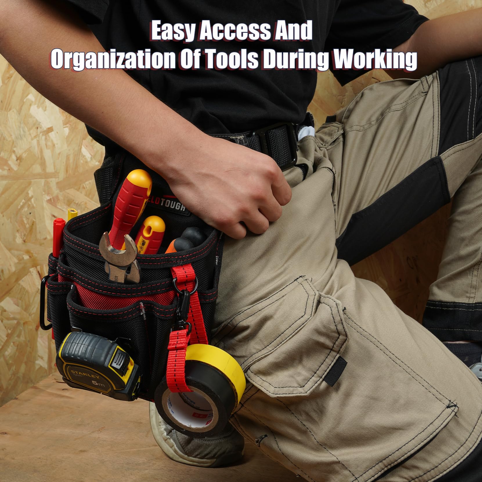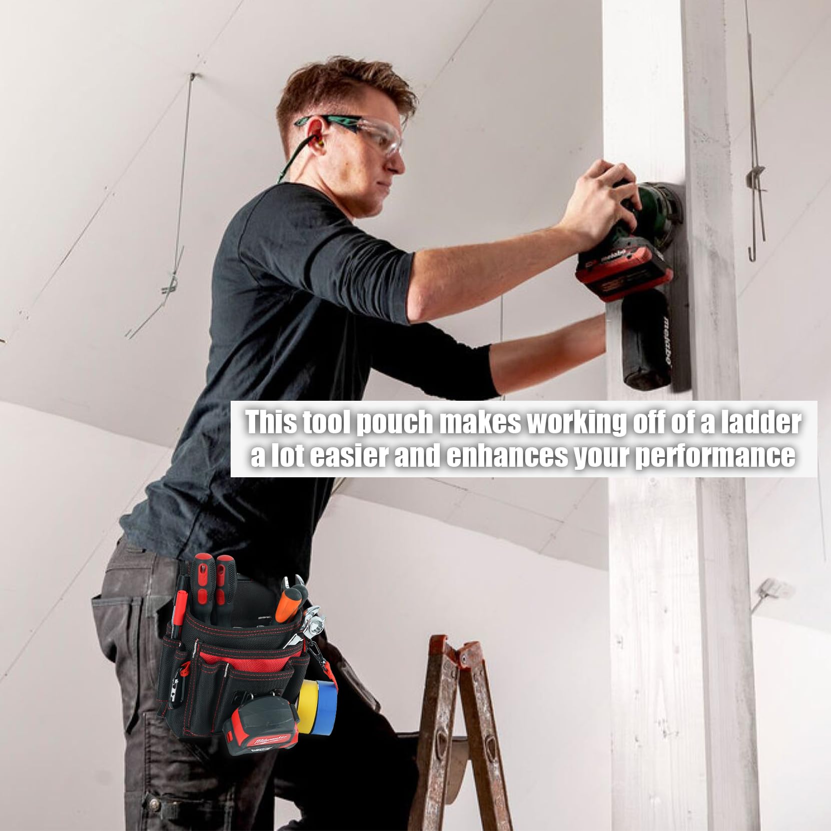 MELOTOUGH Electrician Tool Pouch Lightweight Belt Organizer with Tape Holder & Speed Square Slot for Wiring Construction & DIY Tool Holster with 13 Pockets,Utility Pouch for HVAC Technicians(Red)