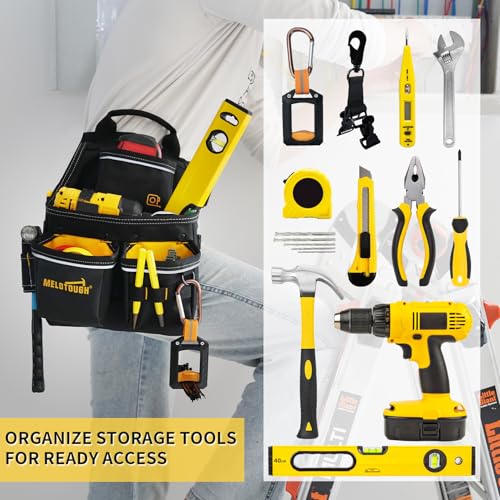 MELOTOUGH Electrician Tool Pouch with Belt,Tool Bag,13 Pockets Small Tool Pouch Designed for Electrician,Carpenter,Construction,Yellow
