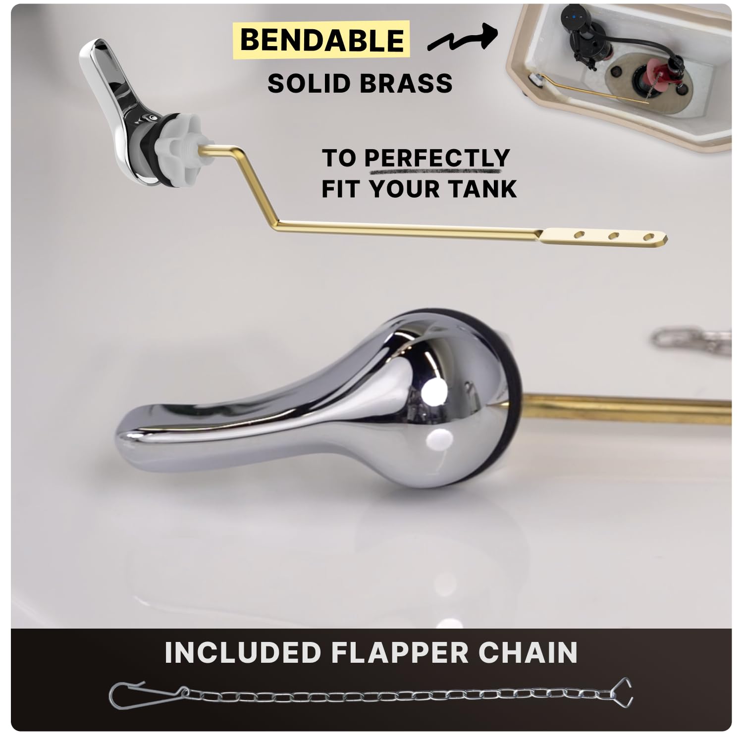 - Easy to Install - Universally compatible with standard brand toilets. This toilet lever is easily installed without tools without needing a plumbing expert. The solid brass rod is bendable with deliberate adjustment to perfectly fit curved toilet tanks. Upgrade your toilet handle.
