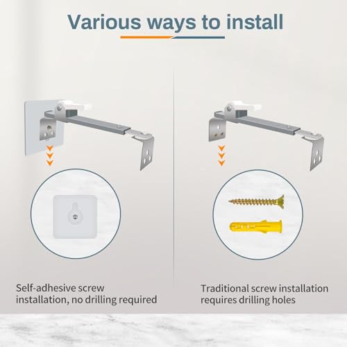 - You have the option to choose between two wall mounting methods: traditional screw fastening or the self-adhesive option, making it suitable for any room. The TV end is easily secured using the self-adhesive option, with no drilling, screws, or tools required.