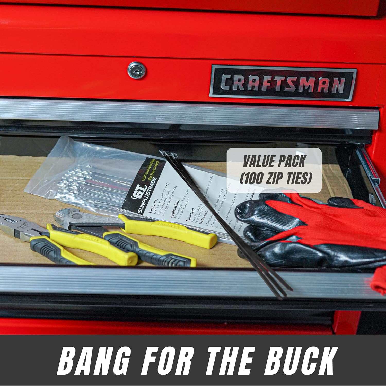 Metal Zip Ties 11.8 inch 100pcs Stainless Steel Zip Ties Heavy Duty Multi-Purpose Self-Locking Cable Ties for Machinery, Vehicles, Exhaust Wrap, Farms, Pipes, Roofs, Cables, and Outdoor Fence (Black)