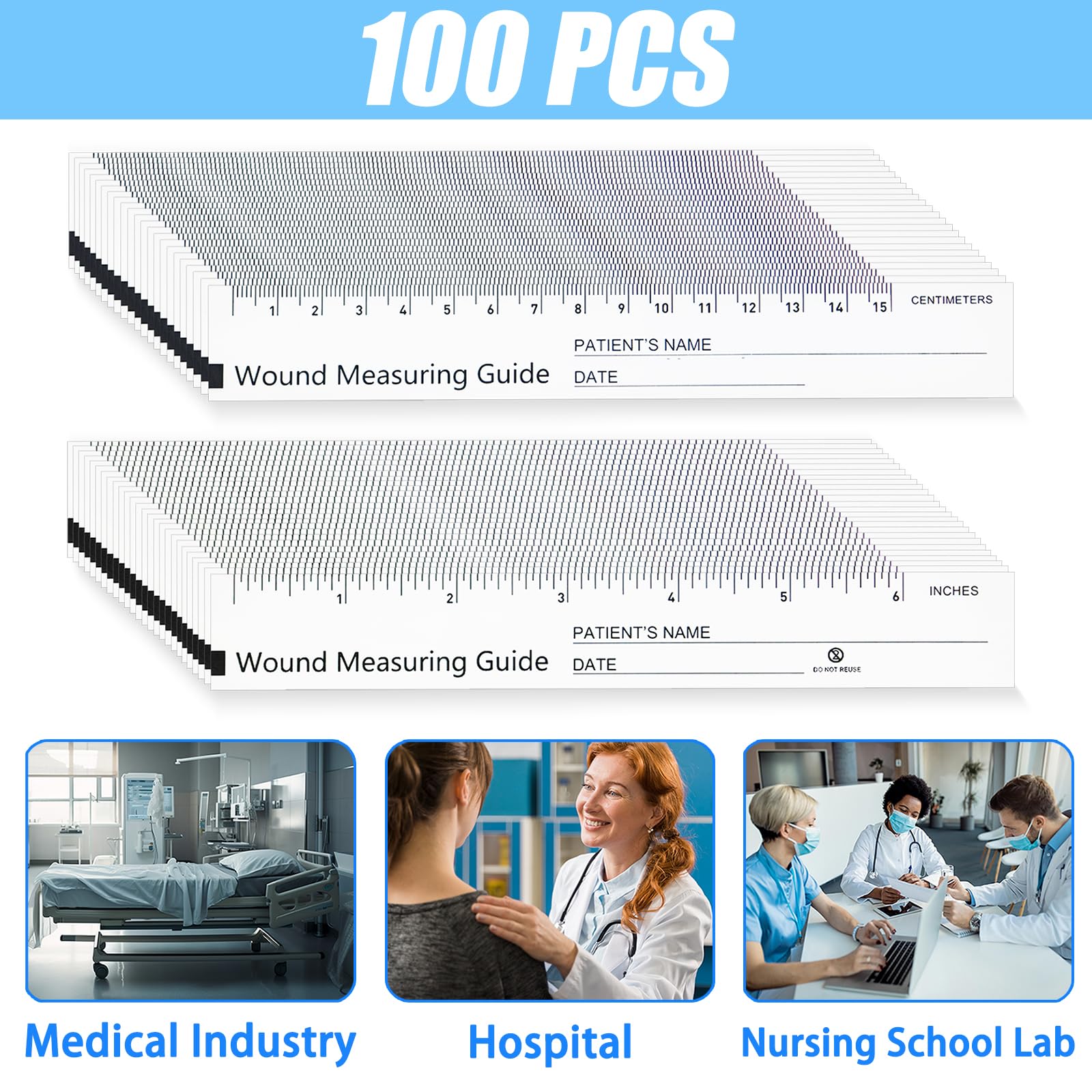 - Measurement & Progress Tracking:You can measure the area of wound directly, and the paper tape measure has enough space to record patient information