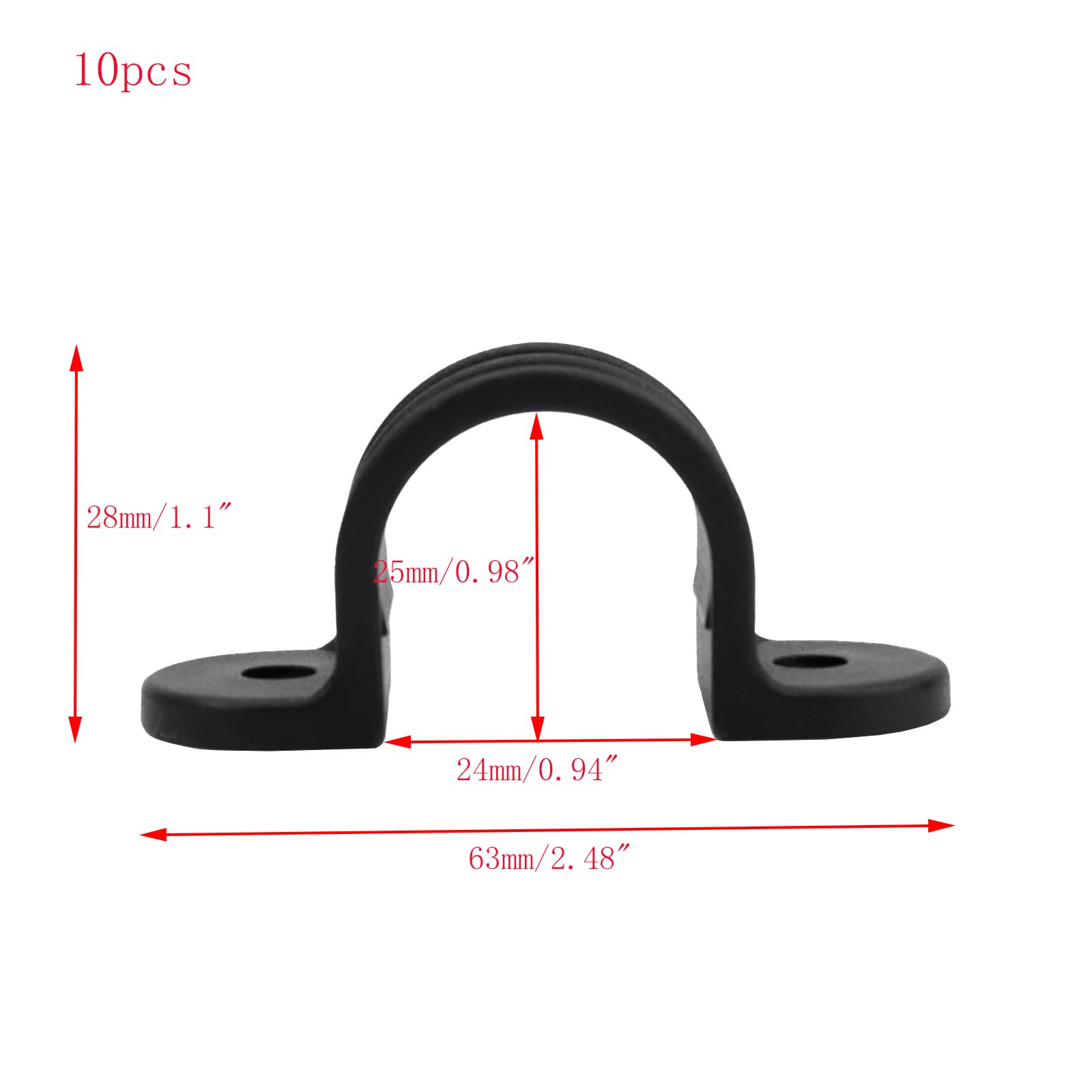 - Size: Pipe Clip Size: 63×22×28mm/2.48"×0.87"×1.1"(L*W*H). Inner Size: 25×24mm/0.98"×0.94"(L*W).