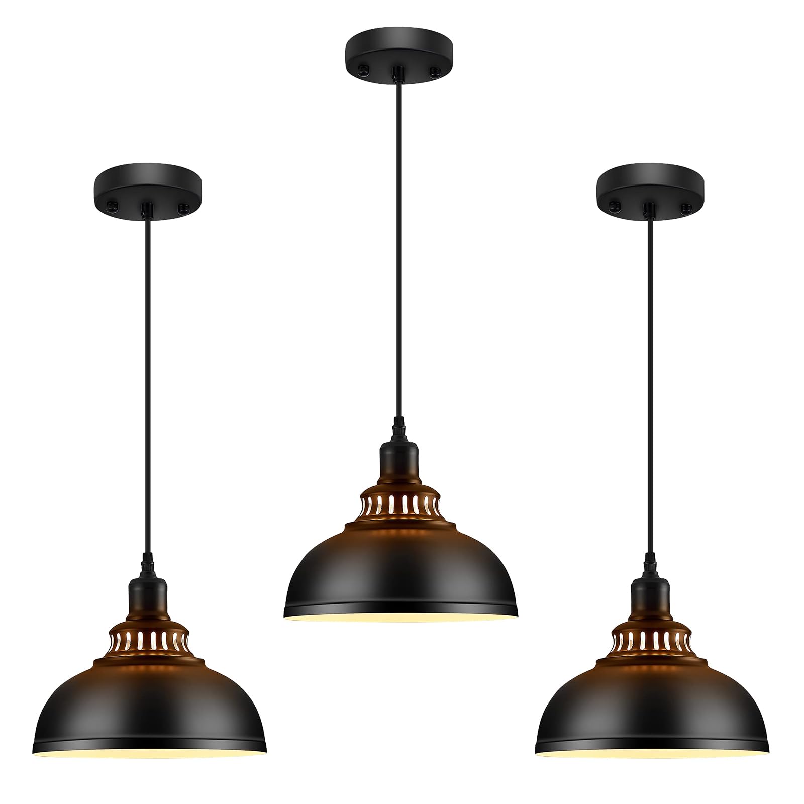 MgLoyht 3PCS Pendant Lights, Farmhouse Pendant Lamp with Metal Shade, Matte Black Industrial Pendant Lighting with E26 Base for Kitchen Island, Dining Room, Living Room, Bedroom, Hallway, 11.38in
