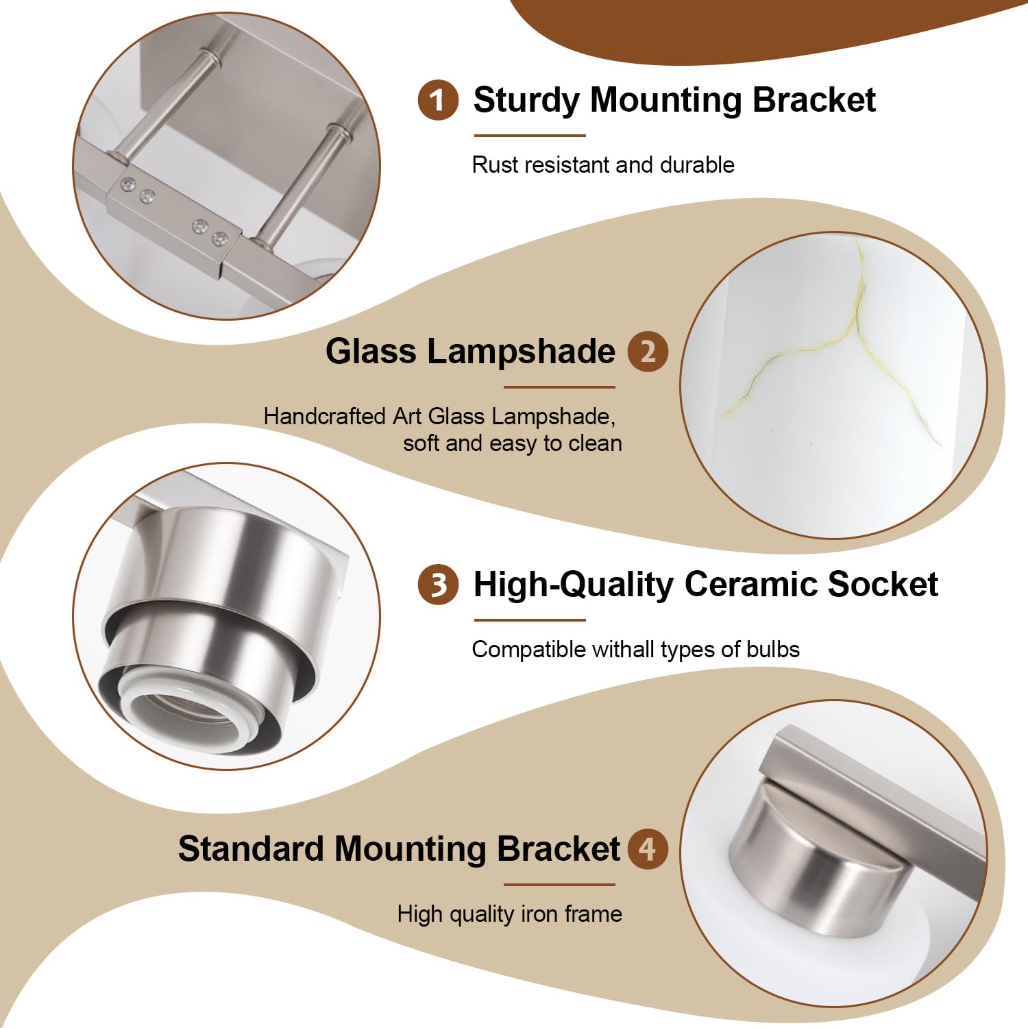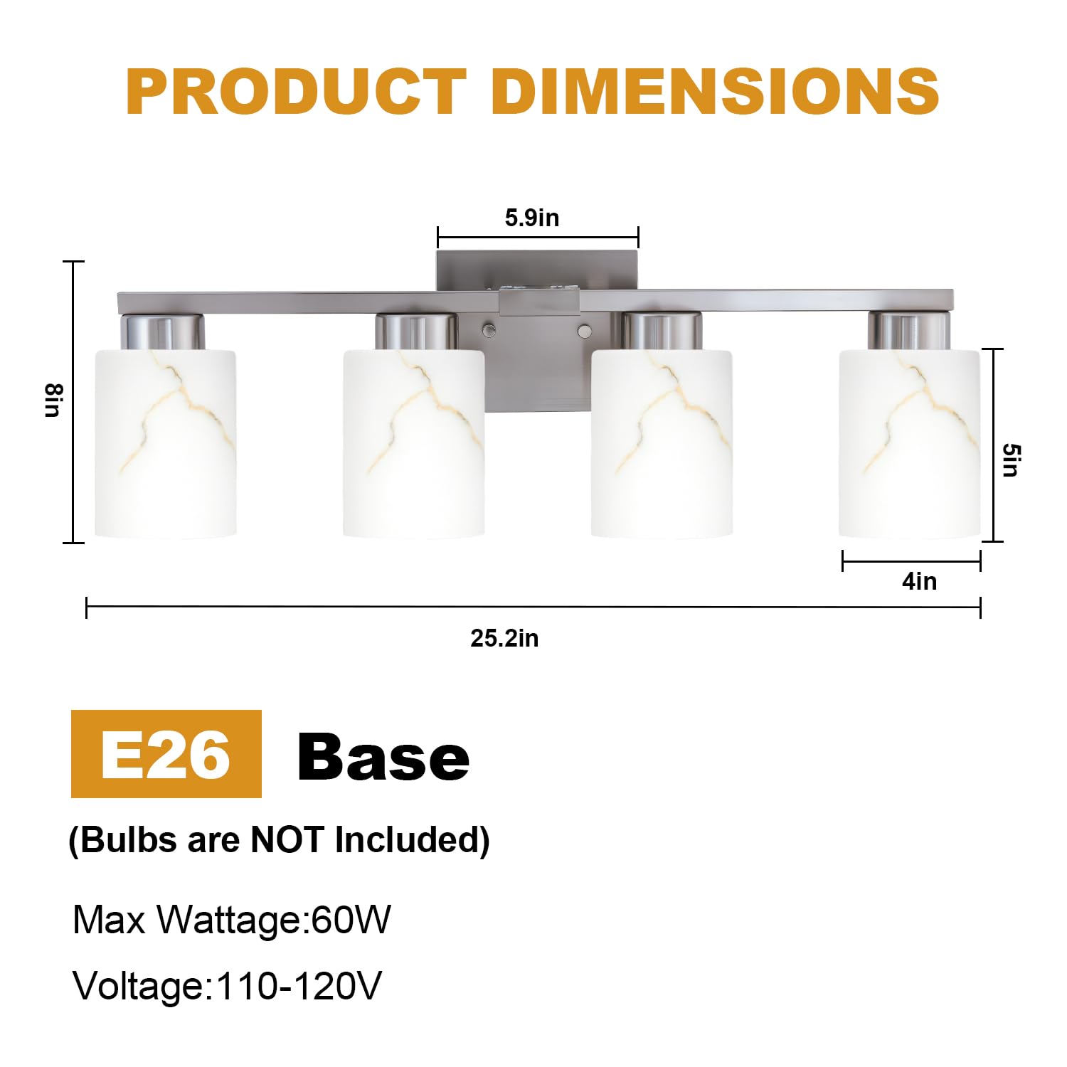 Mieloxiy 4-Light Bathroom Light Fixtures, Modern Vanity Lights, Brushed Nickel Metal Wall Lamp with White Marble Glass for Bathroom, Mirror, Living Room, Bedroom, Cabinet, Porch, Hallway, E26 Base