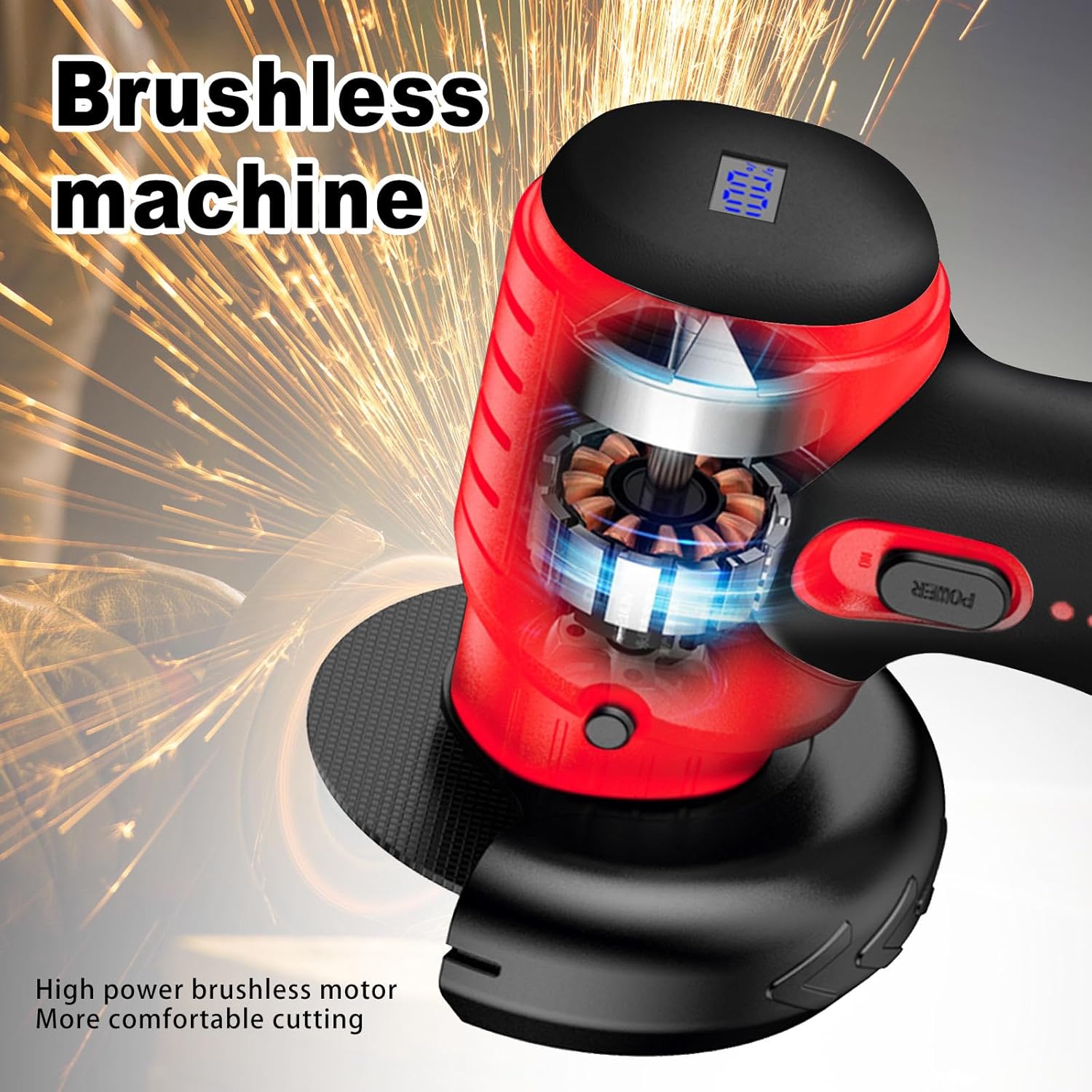 - 【Package Contents/Application Wide】Grinder tool cordless package includes:1xCordless Angle Grinder;6xCutting Wheels;1xCharger; 2xBattery,2xWrench and glove. Handheld angle grinder hold can be used for grinding, cutting, sanding and polishing processing of various materials, such as metal, tile, concrete or other solid materials.Small angle grinder can also be used for home improvement, such as cutting and polishing tiles, wood, stone, steel, pipes, conduits, etc