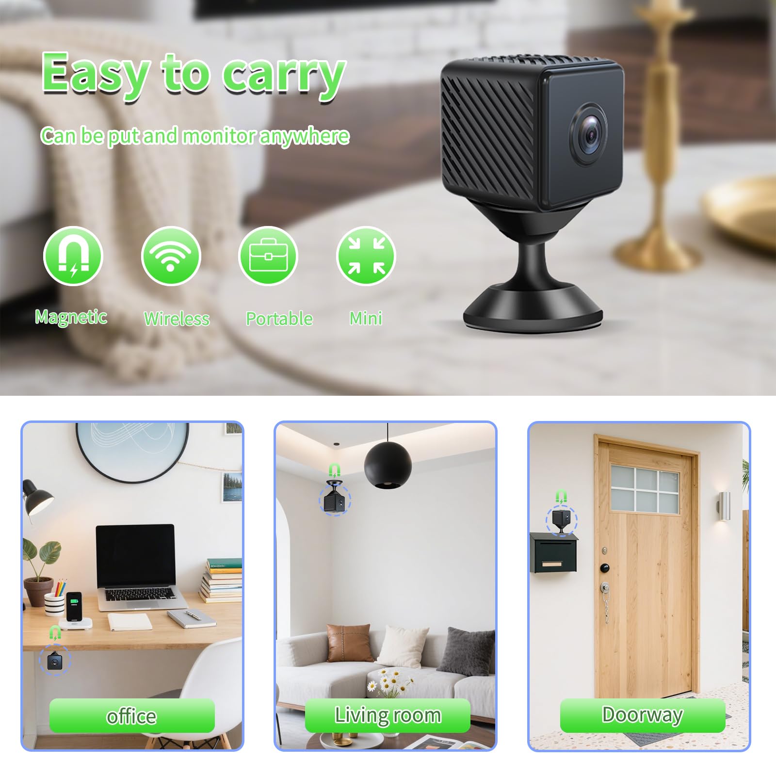 - 【 Mini Security Wireless Camera See More Clearly Day and Night 】 - Our security cameras can capture detailed images. Whether it's home monitoring, baby care or office , they can provide a clear and smooth experience even in the dark. Supports up to 1080P HD resolution, ensuring clear visibility at every moment without missing any important details.
