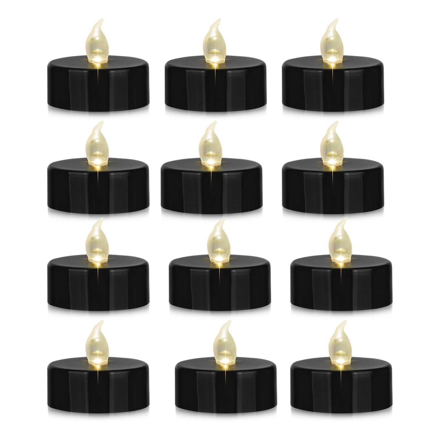 MINXIN Battery Operated Tea Lights Candles: 24 Pack Realistic and Bright Flickering Holiday Gift Flameless Candles LED Electric Tea Candles for Seasonal & Festival Party Home Decoration Black