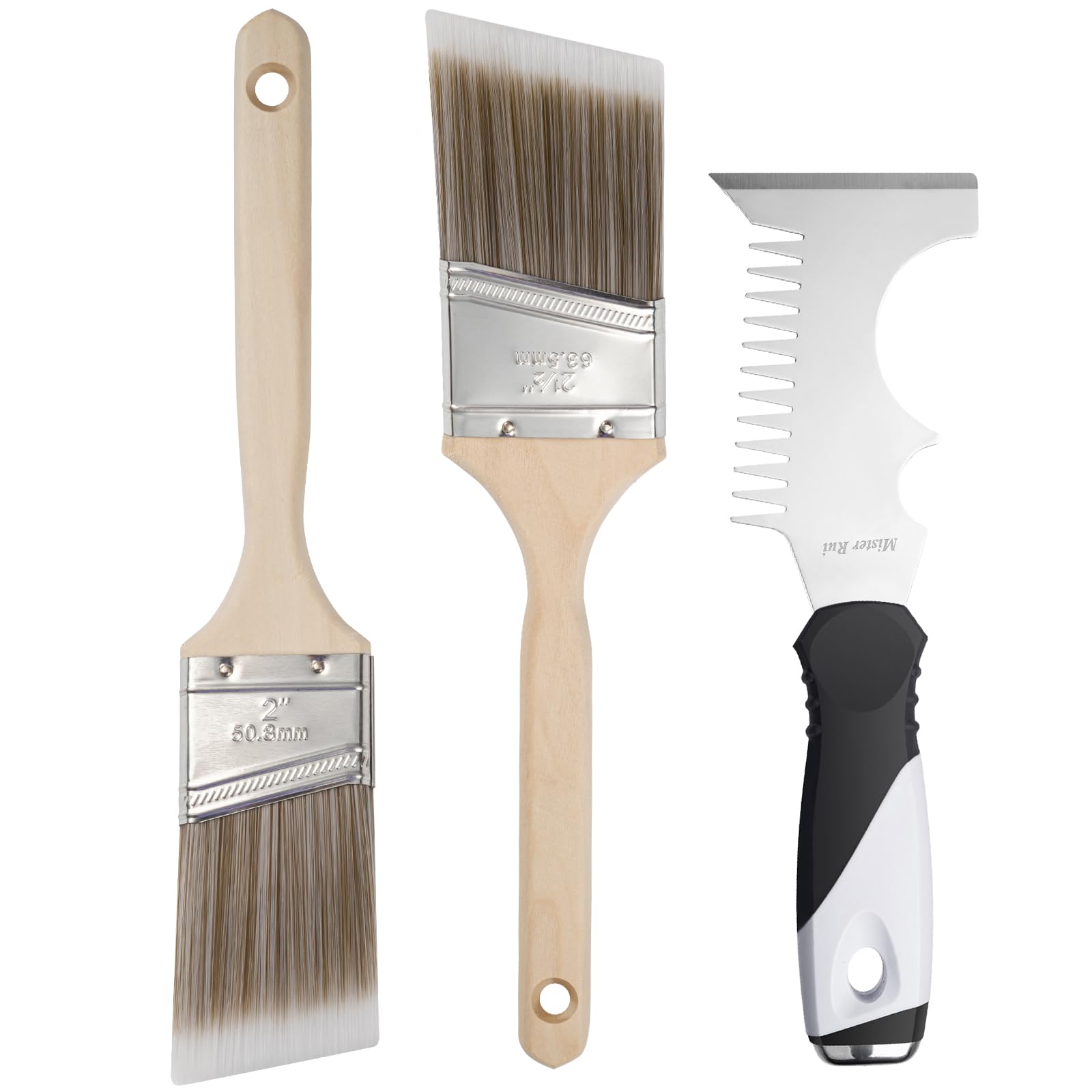 - ALL-IN-ONE PAINT BRUSH SET: This Mister Rui paint brush set includes a 2" angled sash brush for detail work, a 2.5" brush perfect for doors and walls, and a paint brush cleaner tool. It's the ultimate solution for both painting and maintaining your essential paint brushes