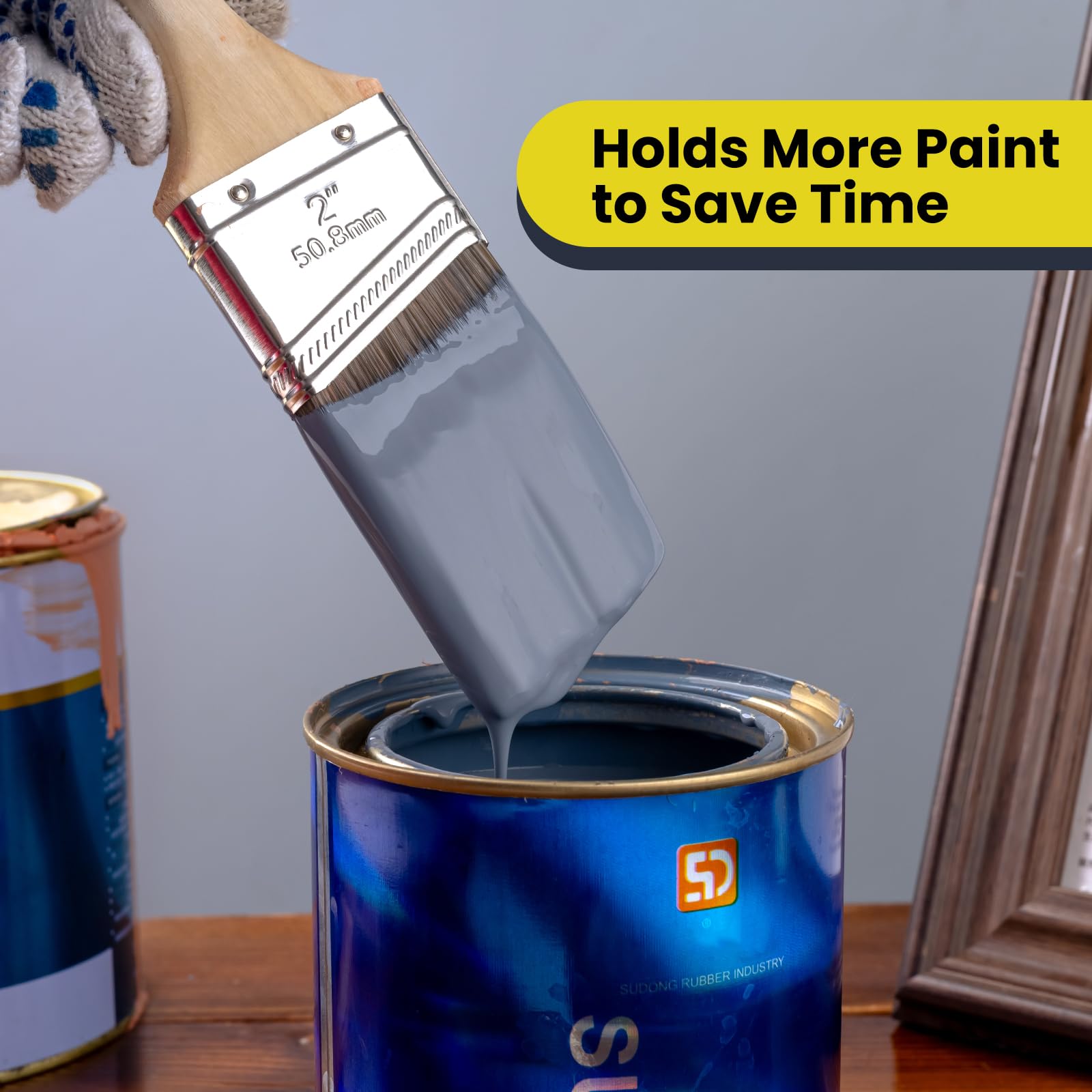 - COMFORTABLE & BALANCED HANDLES: Designed by professional painters, the handles of our trim paint brushes provide optimal comfort and balance. This makes them lighter and easier to maneuver, especially for overhead work, ensuring a smooth painting experience