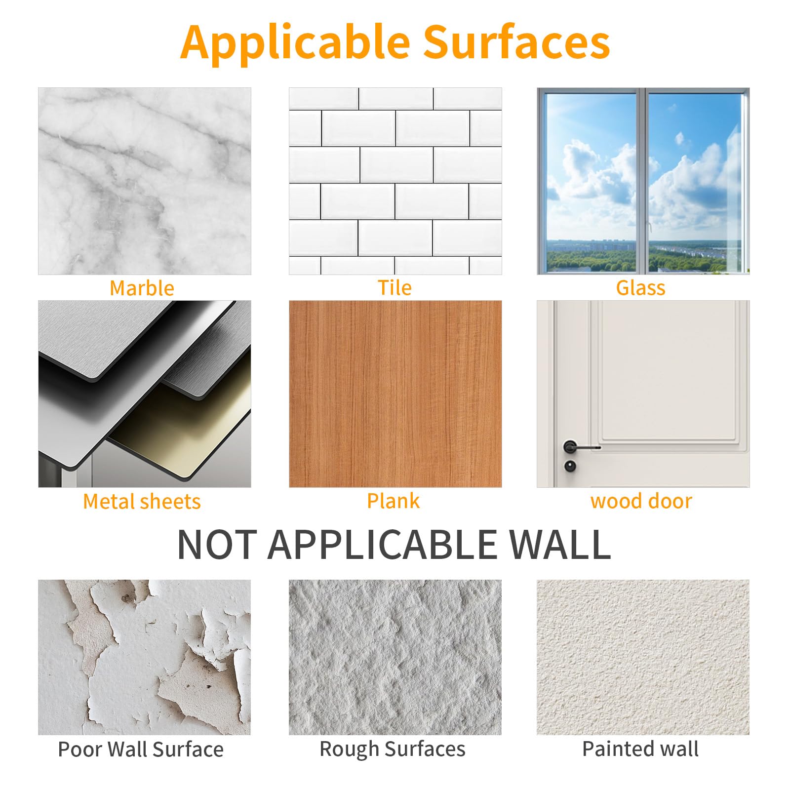 - No-Drill Installation: Easy to install with adhesive backing; no tools or drilling required for a quick setup
