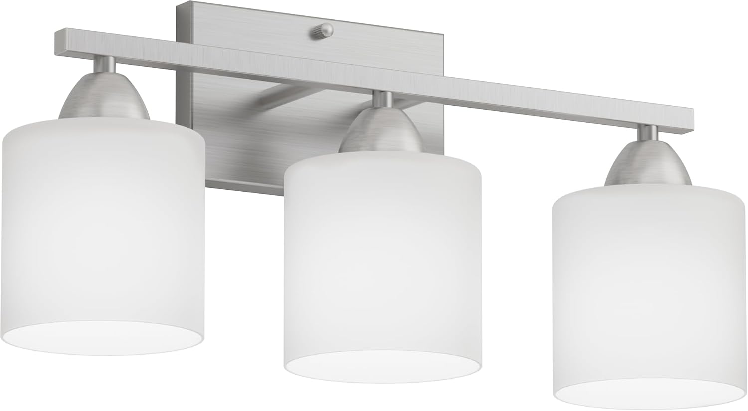 - Eye-caring Milky White Glass Shades: White color is considered as one of the good choices for decorating your home. The bathroom vanity light fixture features elegant milky white glass shades, which provide a soft and diffused illumination. These white lampshades not only create a comfortable and inviting atmosphere in any room but also easy to be cleaned with a cloth.