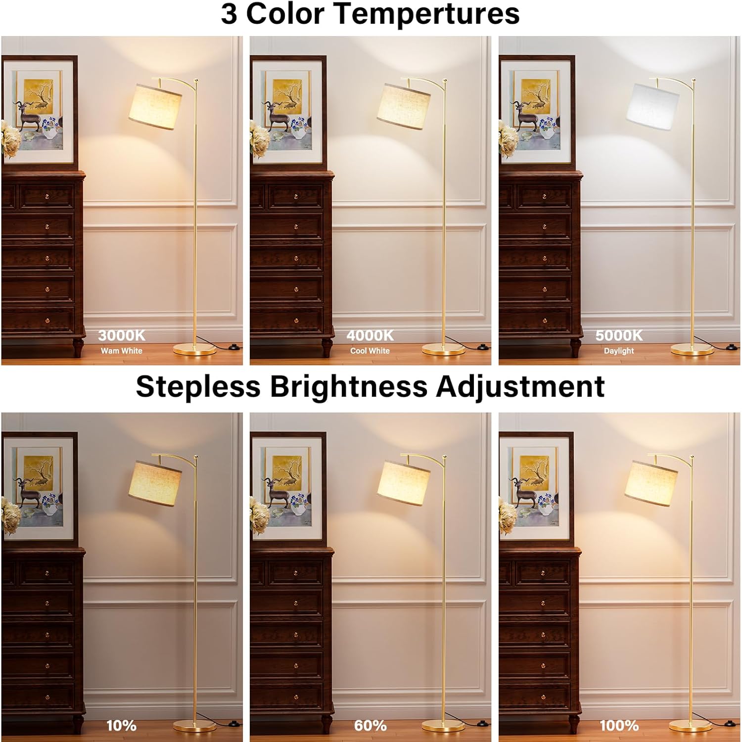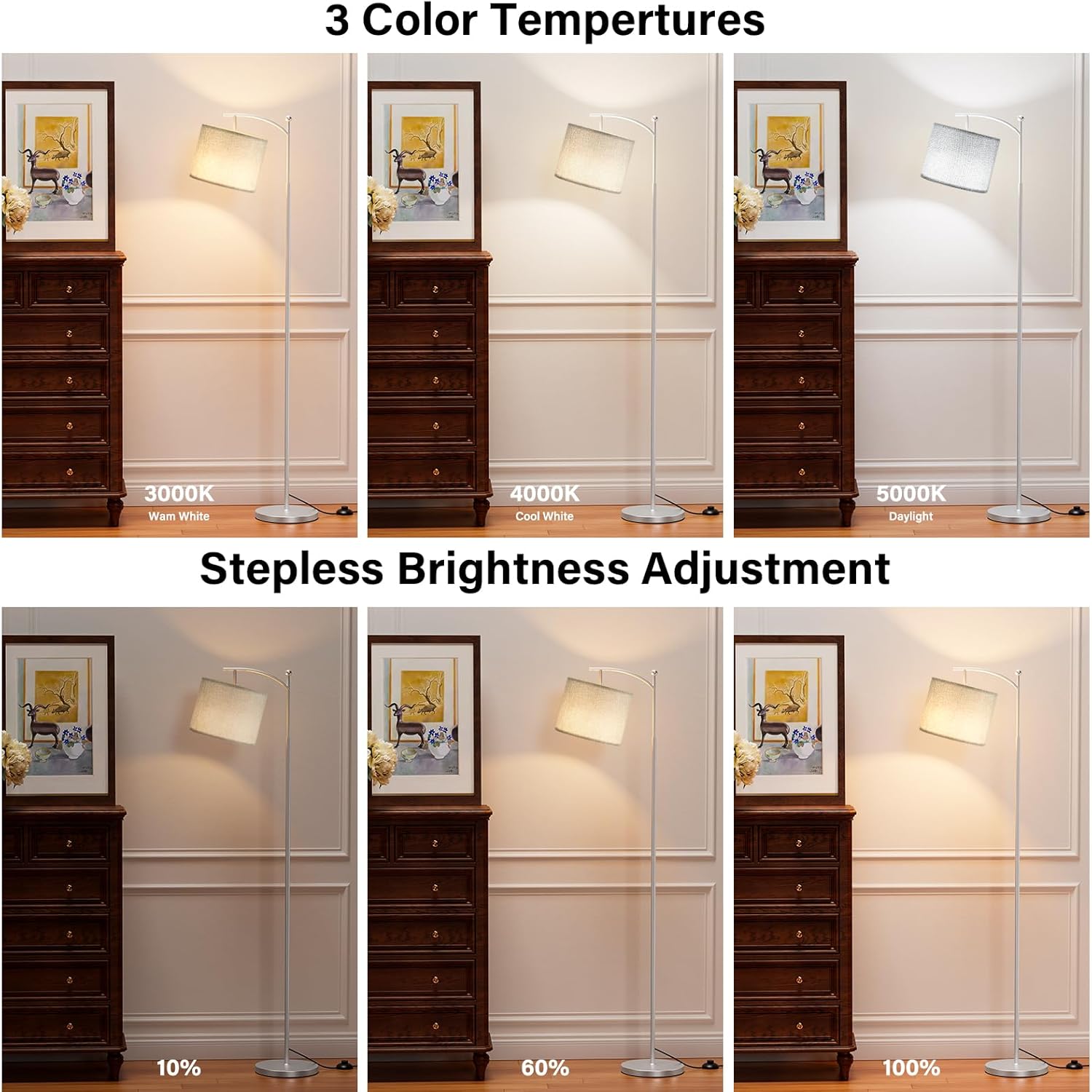 - Adjustable Lampshade for use - Arc floor lamp comes with a rotating head, assuring convenience for daily life. When you put the floor light behind your couch, you can adjust the lamp shade to any angle you like, which is very proper for reading and working.