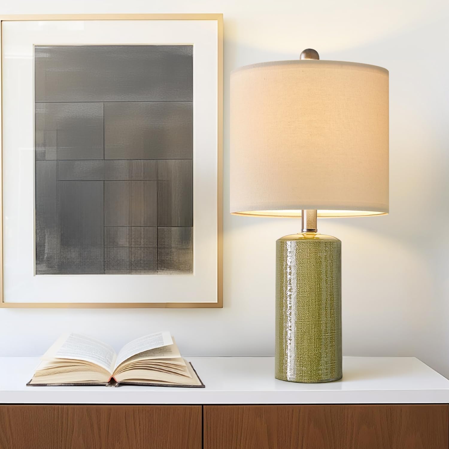 Modern Green Ceramic Table Lamp - 20.25” Nightstand & Bedside Lamp for Bedroom & Living Room