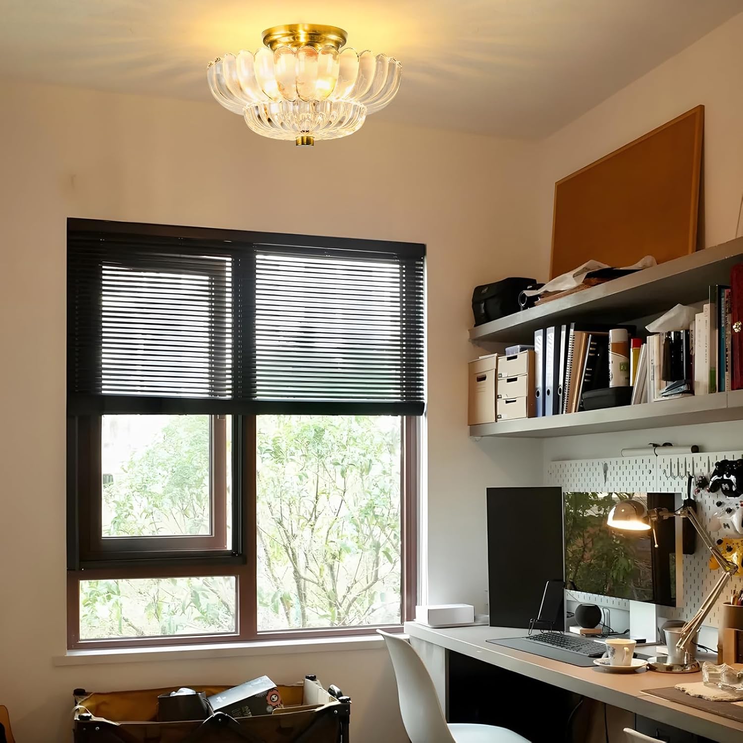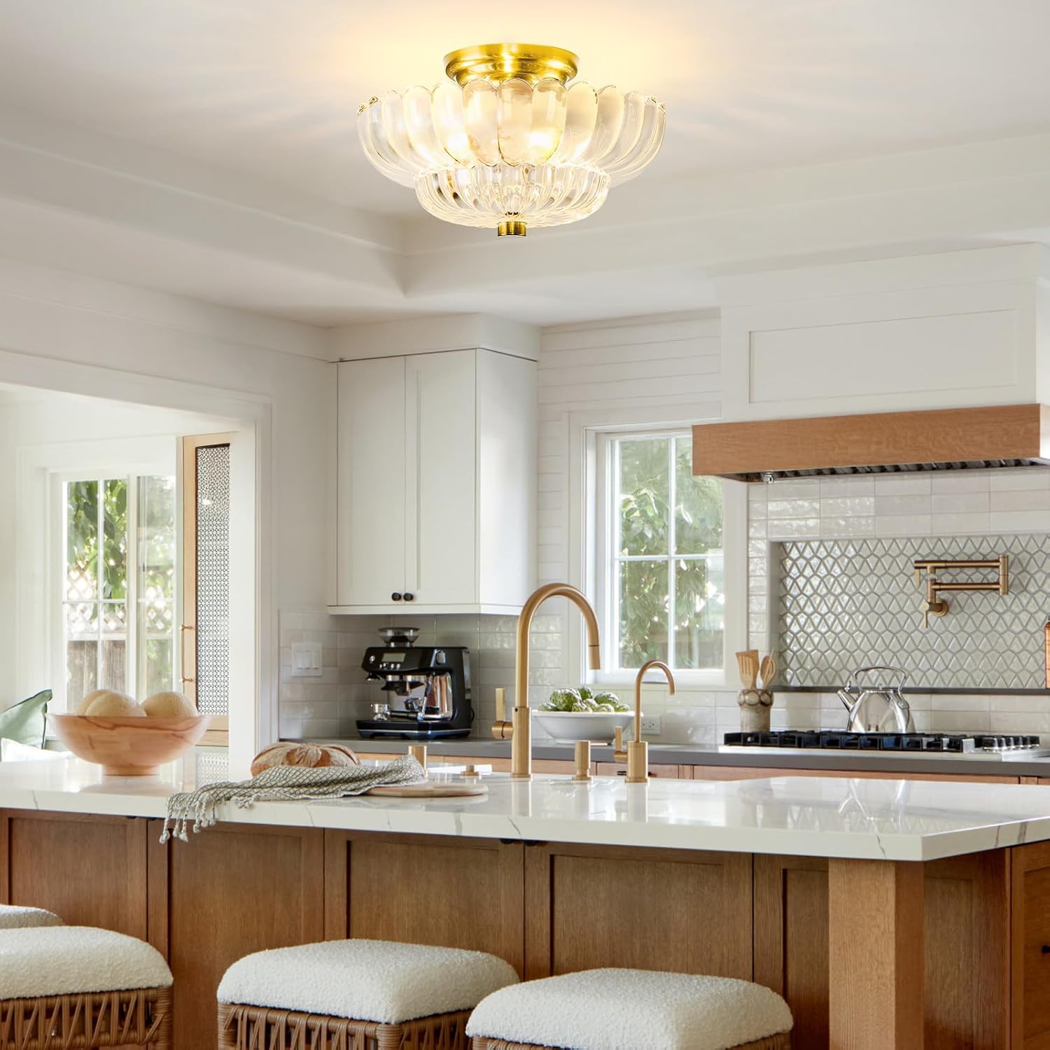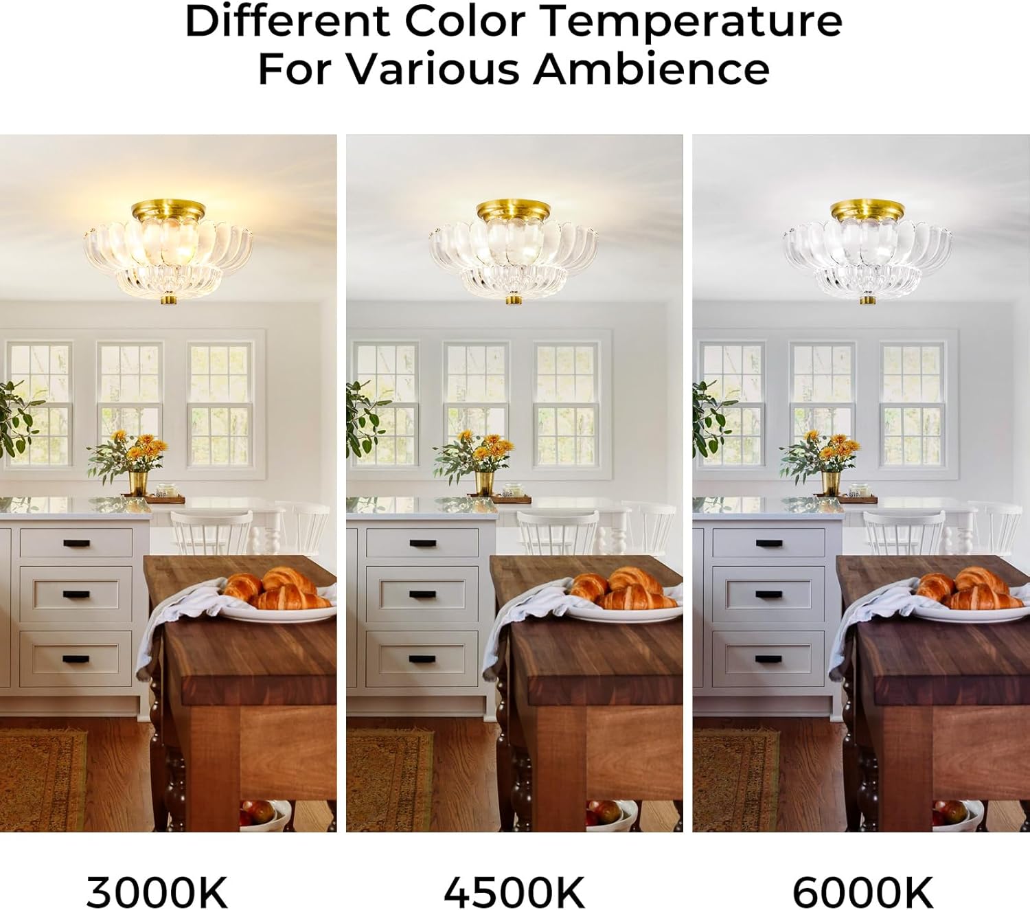 - 【Semi Flush Mount Design】: Different from ordinary ceiling lights, our semi flush mount ceiling light use elegant shapes made of very heavy and well-made glass and brushed brass metal bases, which gives plenty of stunning light and beautiful shadows for your home. It really is gorgeous! Continue to beautify your living environment based on style