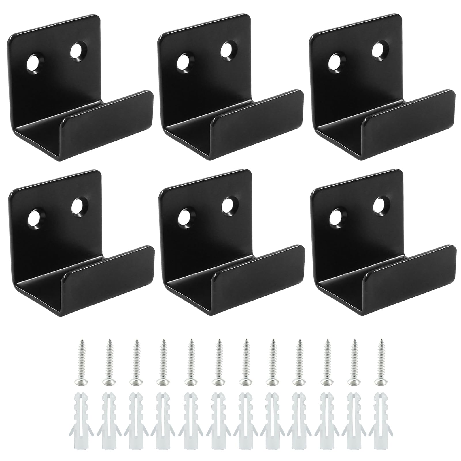 Moicstiy 6 Pack Wall Hanger Fastener, Stainless Steel Wall Mount Brackets Hook with 25 mm Inner Width Heavy Duty Tile Hangers for Ceramic Display (Black)