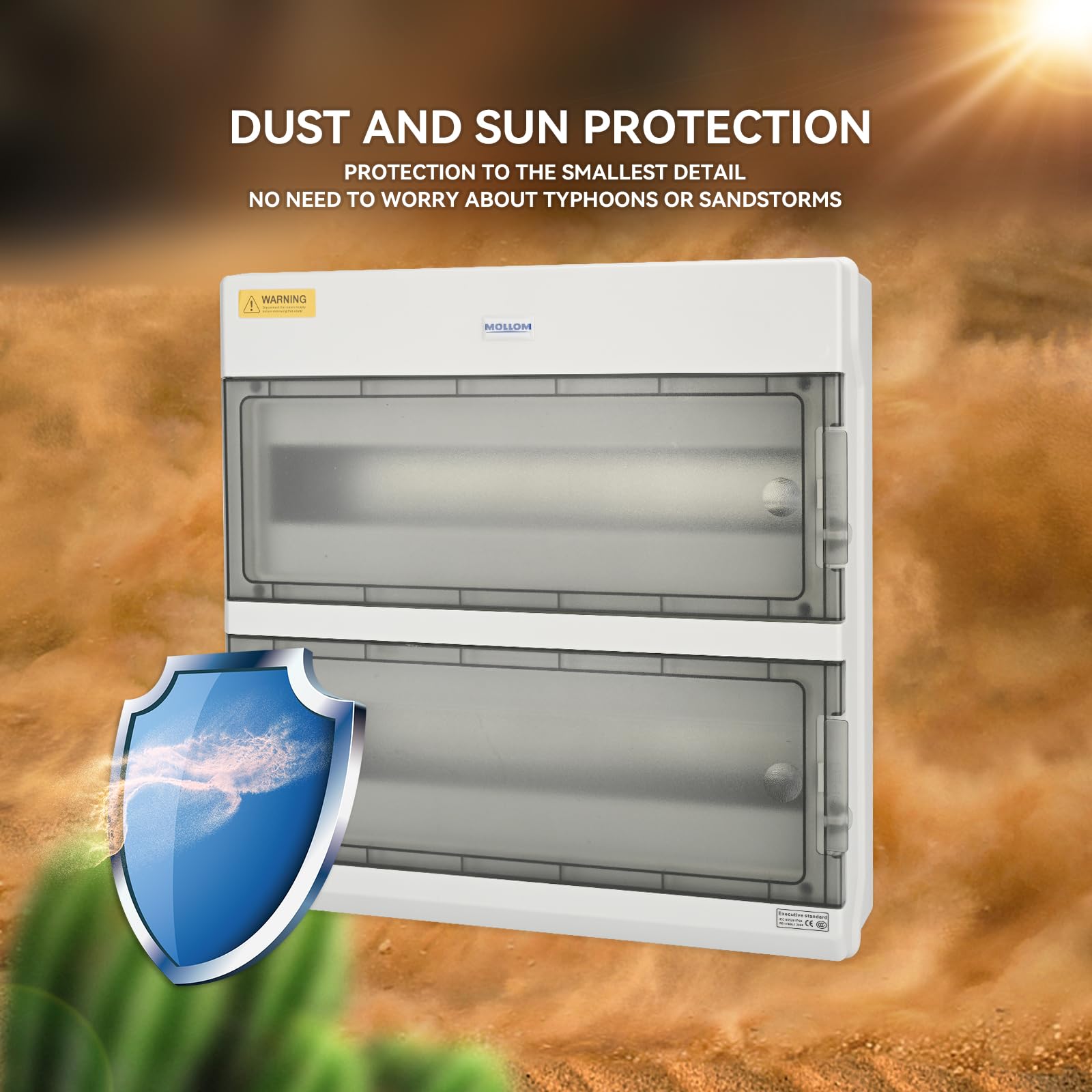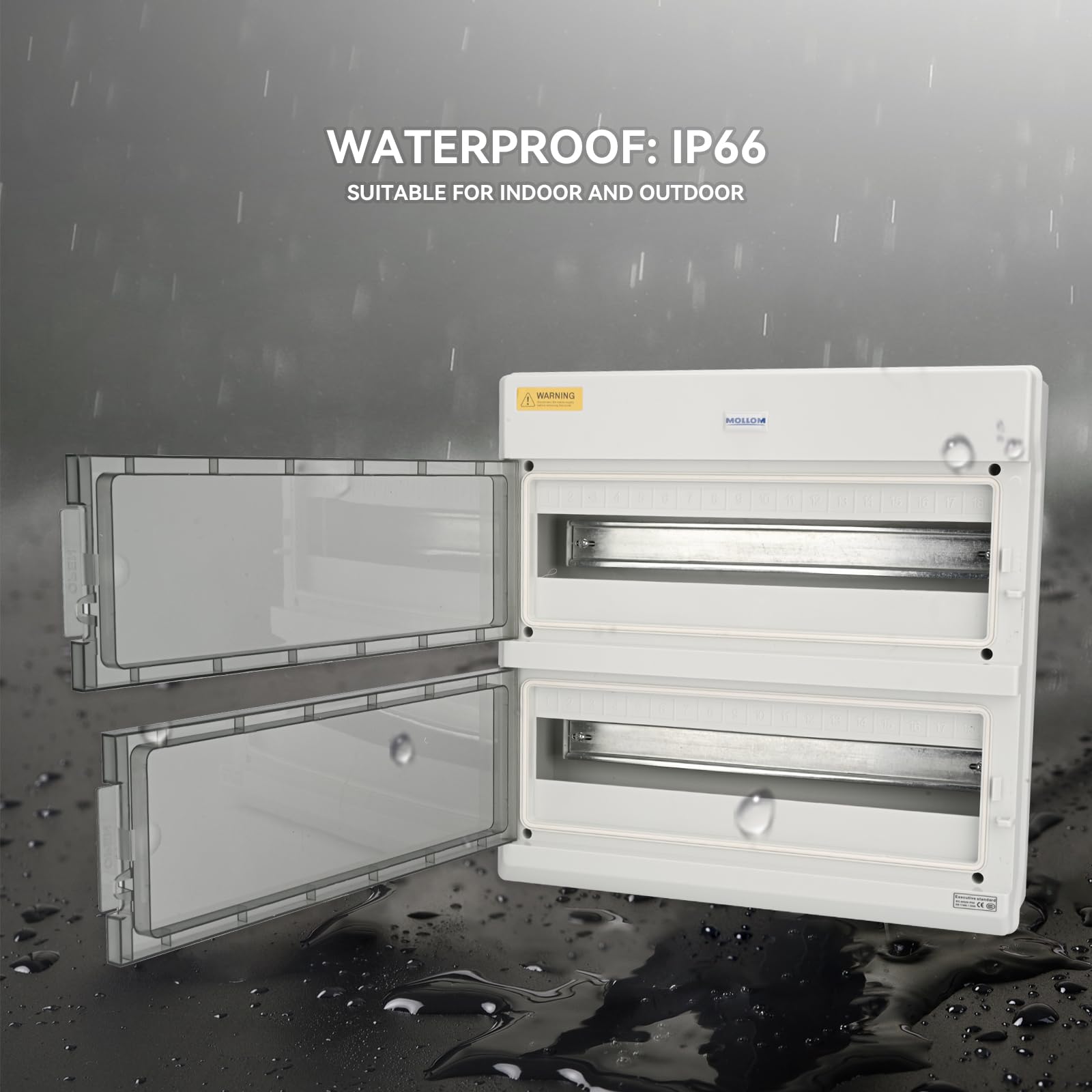 Mollom 36 Way Power Distribution Box with Bus Bars and Din Rail for Miniature Circuit Breaker MCB, Waterproof IP66.Padlock Available for Indoor and Outdoor Use