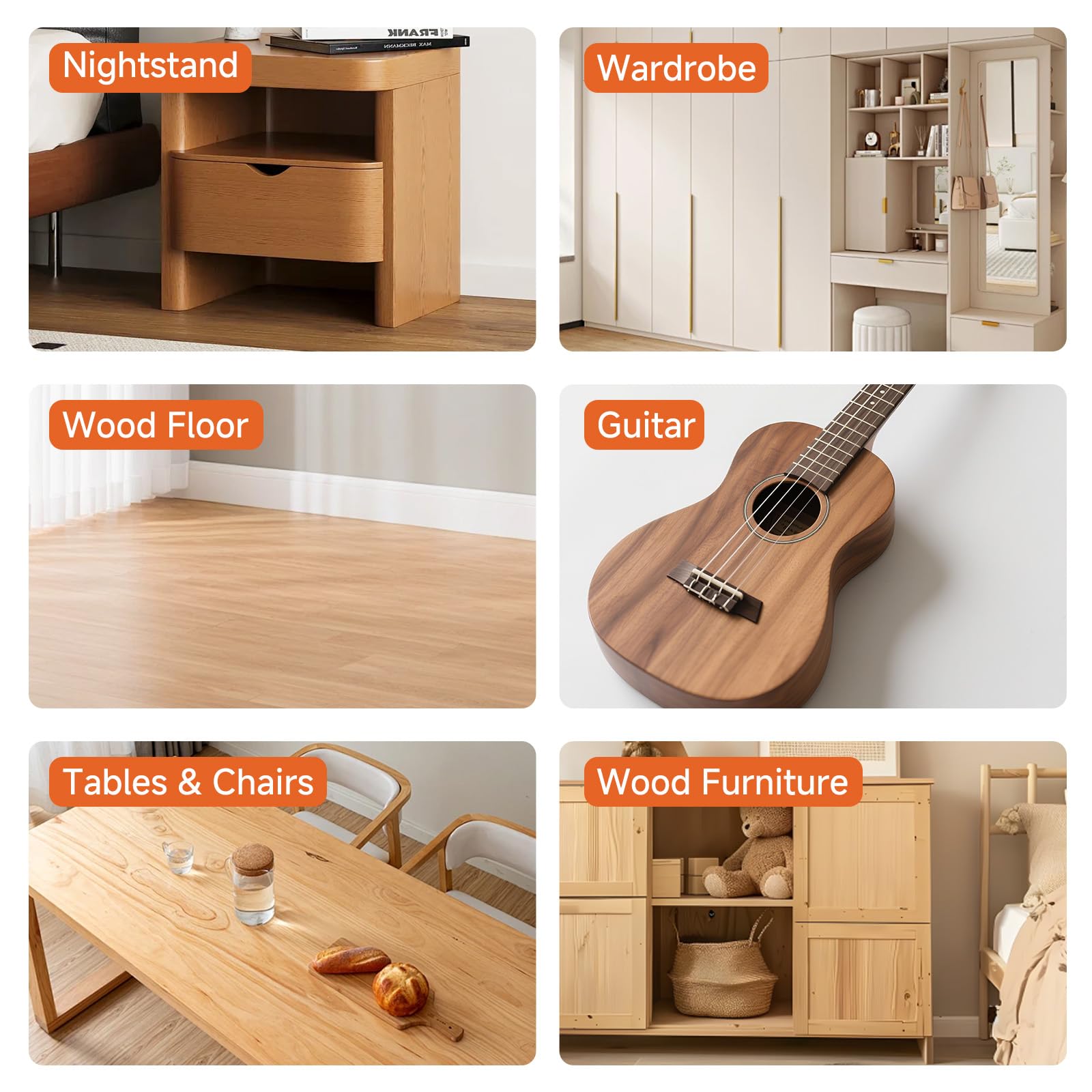 - WIDE APPLICATION: Wood Filler repair kit is suitable for various wooden surfaces, such as wooden furniture, wooden floors, wooden doors and windows, cabinets, tables, chairs, beds, bookcases, wood floors, doors and any other wood furniture and wood crafts, etc