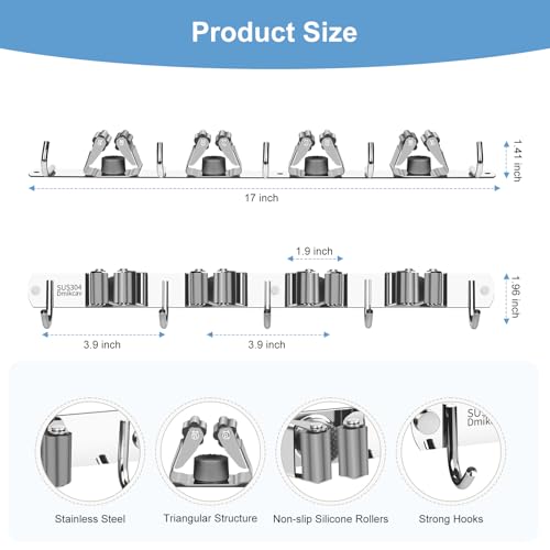 - ¡¼sturdy and durable¡½The mop holder wall mount is made of 304 stainless steel, which is a better, stronger and longer lasting material than plastic. Corrosion resistant and rust proof.