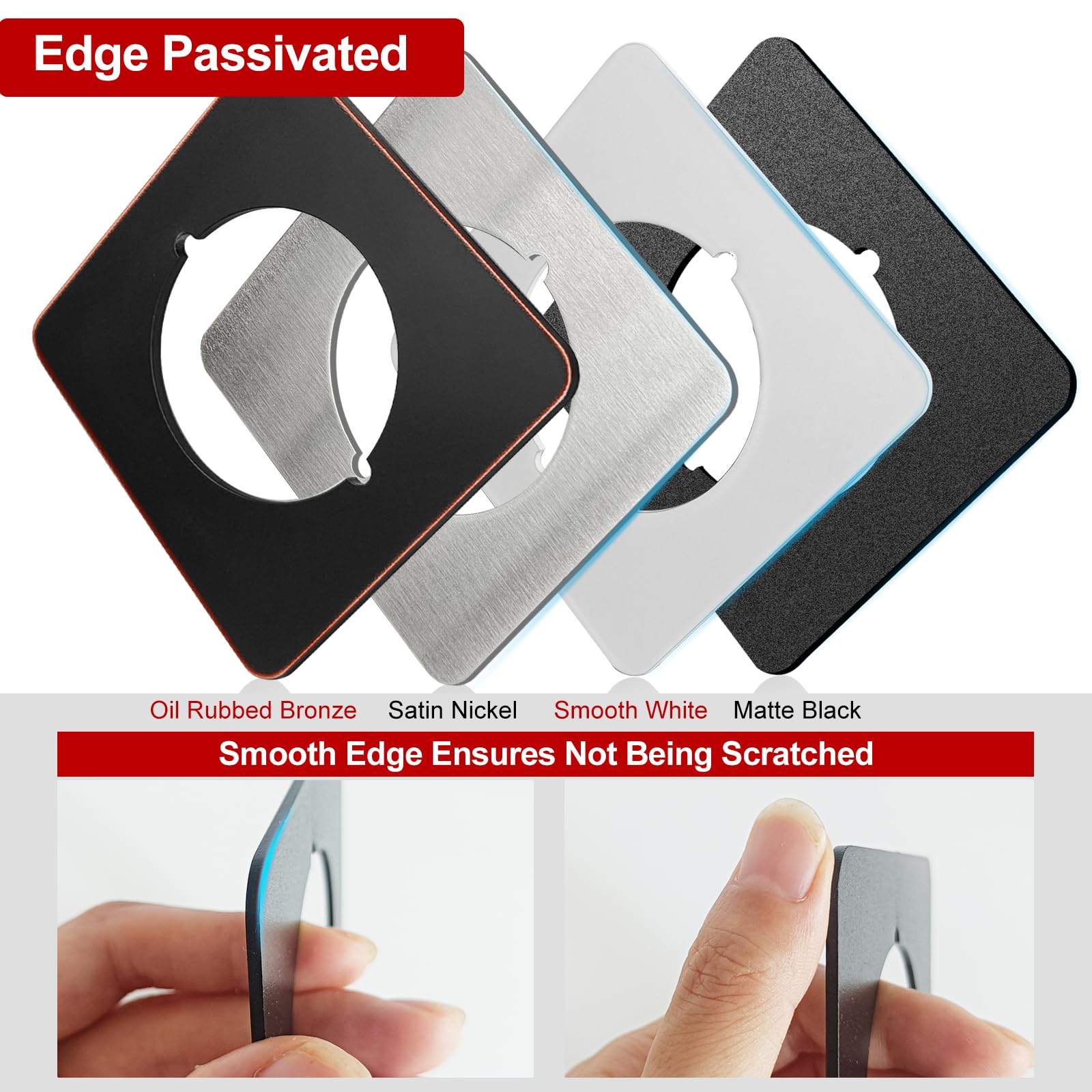 - Finish: Available in matte black, smooth white and satin nickel. Matte black: Slight textures for fingerprint-proof and smudge-proof. Smooth white: Piano gloss finish for modern decoration. Satin Nickel: Paintable. Featured with rust-proof finish, it can be used in dry or humid situation. Ideal for exterior and interior doors which a lock plate is needed.
