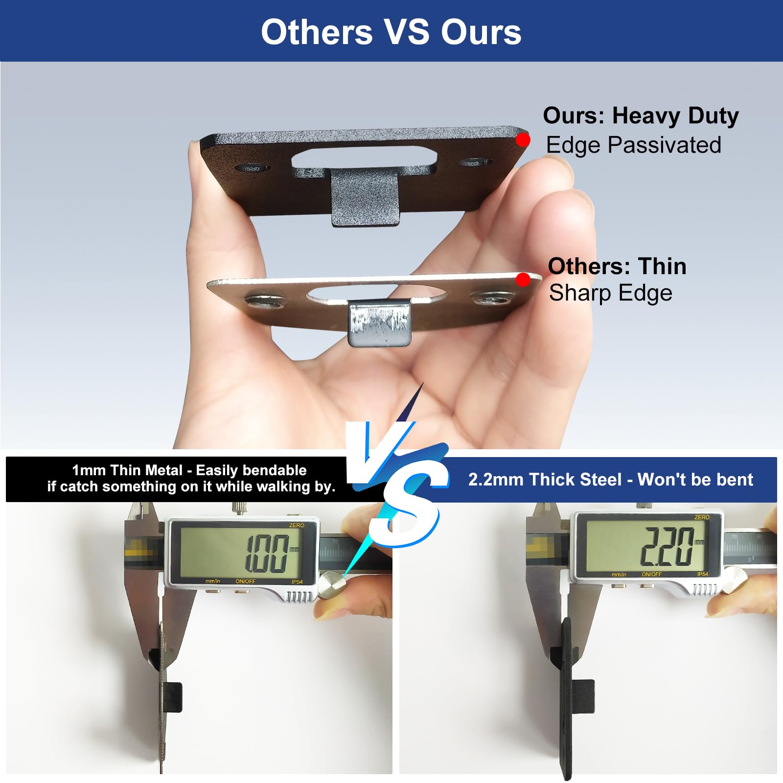 - Heavy Duty Version: Made of 2mm hardened steel. For the extended strike plate installed on the door, if the material is too thin and the edge is too sharp, it is easy to catch clothes or other items when we pass through the door, causing the strike plate to bend or clothes to be damaged. We solve this problem by thickening the material and passivating the edges.