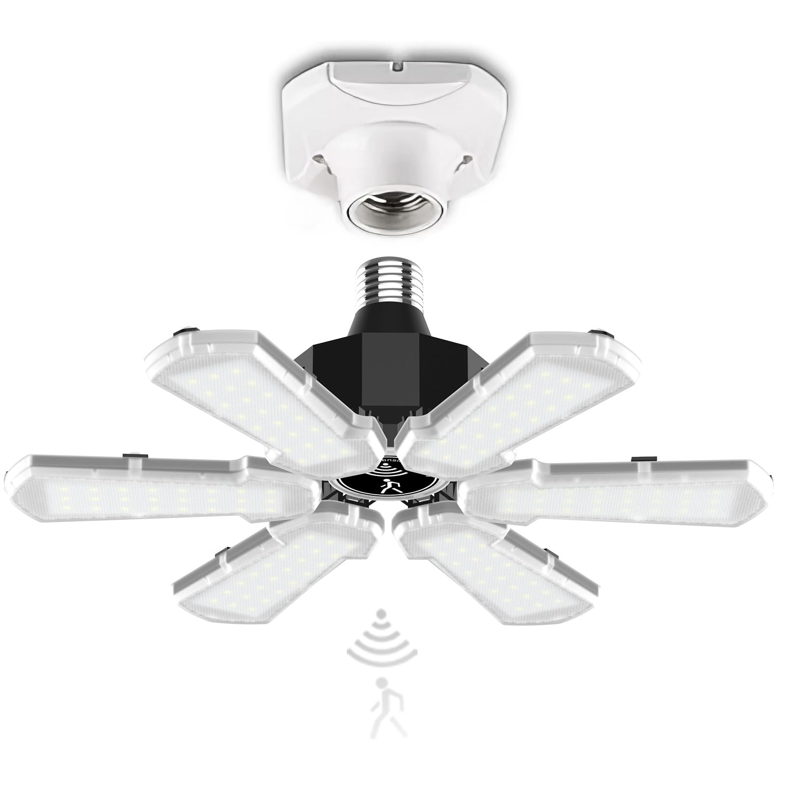 Motion Sensor Garage Light, Bright 18000LM Basement Shop Ceiling Lighting with Motion, 180W LED Motion Activated Garage Lighting w/ 6 Adjustable Panels Screw in E26 E27 Bulb for Basement Shop(1Pack)