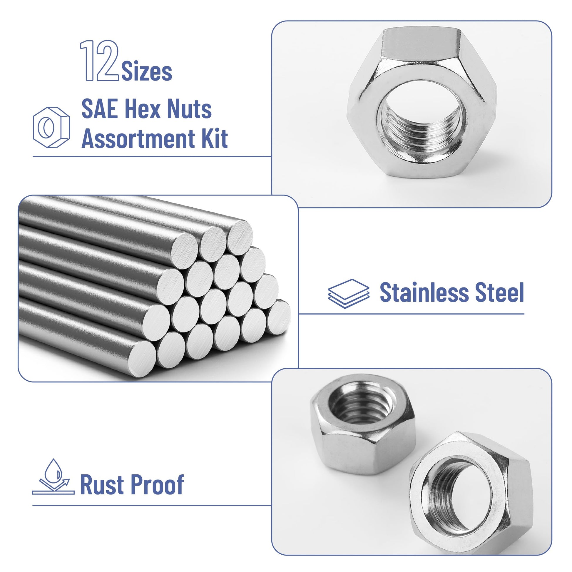 Mr. Pen 405 pc Stainless Steel Hex Nut Assortment, 1/4-20, 3/8, 5/16, 10-32, 5/16-18, 6-32