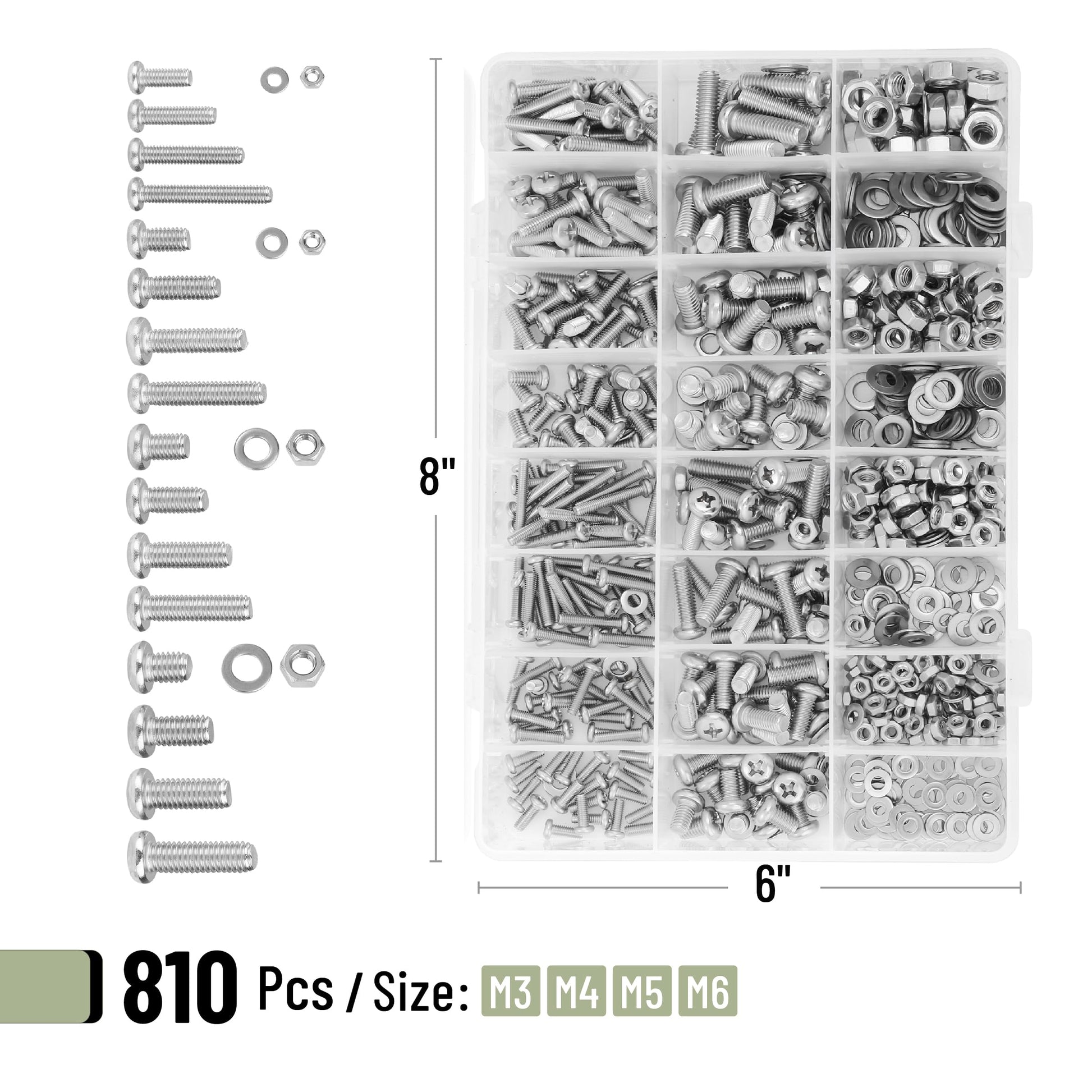 Mr. Pen- Nuts and Bolts Assortment Kit, 810 pcs, Stainless Steel M3 M4 M5 M6 Phillips Pan Head Assorted Nuts and Bolts, Machine Screw Assortment Kit with Clear Storage Box