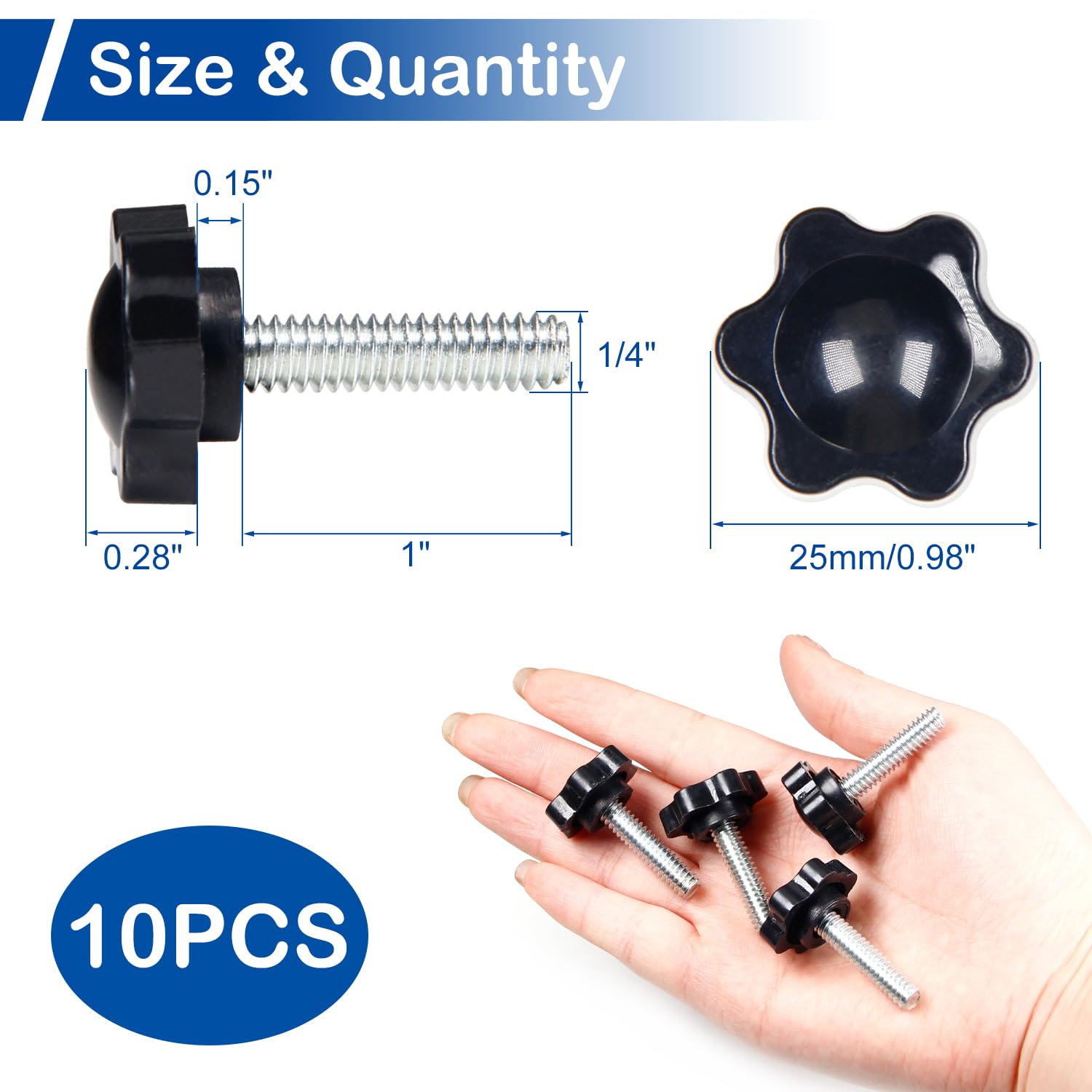 - 【Size】Thread diameter: 1/4"; Thread Length: 1"; Star knob diameter: 25mm/0.98"; Star knob overall thickness: 11mm/0.43".