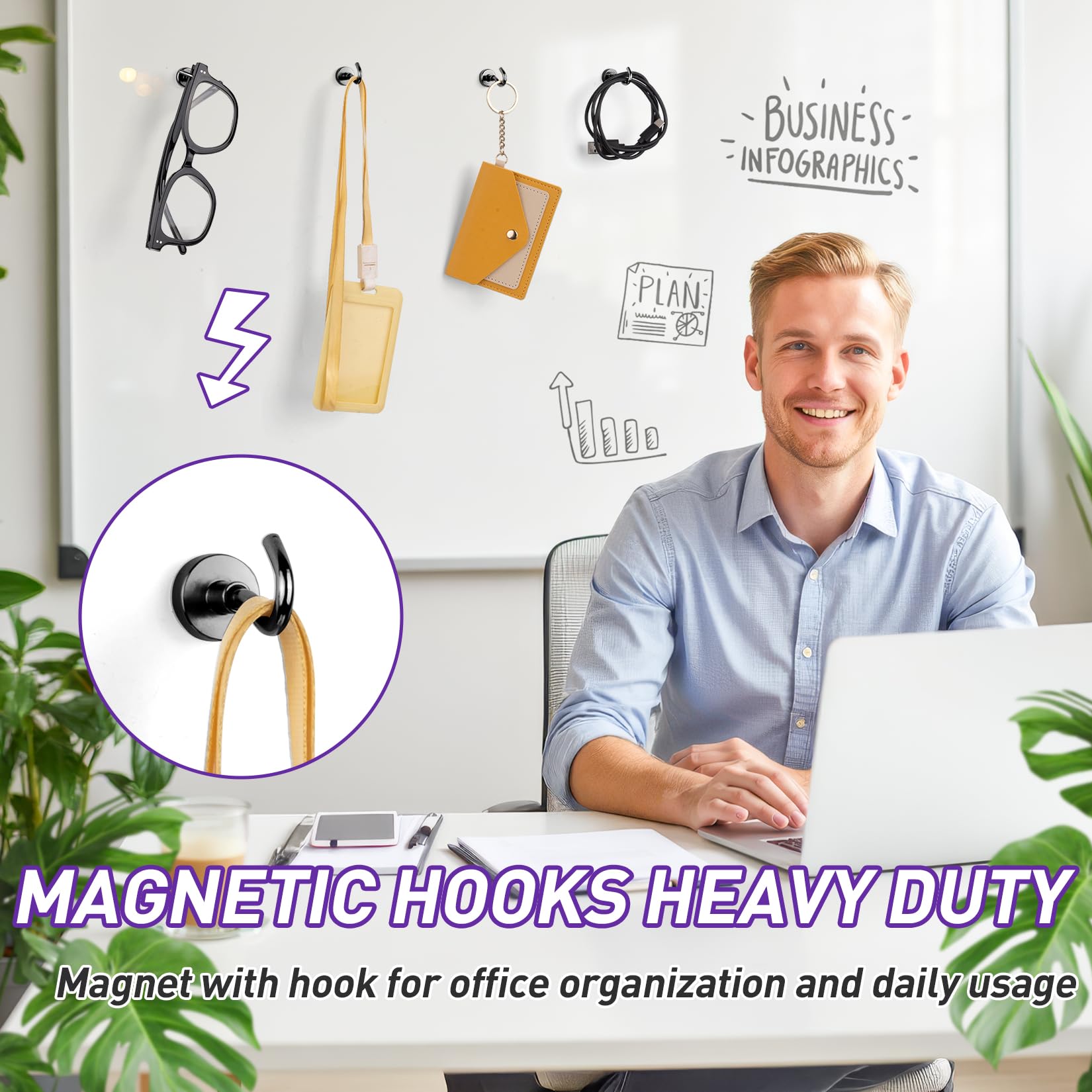 - Easy Assembly and Strong Hold: Enjoy the ultimate combination of ease and strength with our magnetic hooks for hanging. No tools or drilling required—just place these heavy duty magnet hooks on any metal surface for instant use. With a holding power of up to 25lbs vertically and 8lbs horizontally, these hooks provide secure, reliable support for accessories, tools, or decorations.