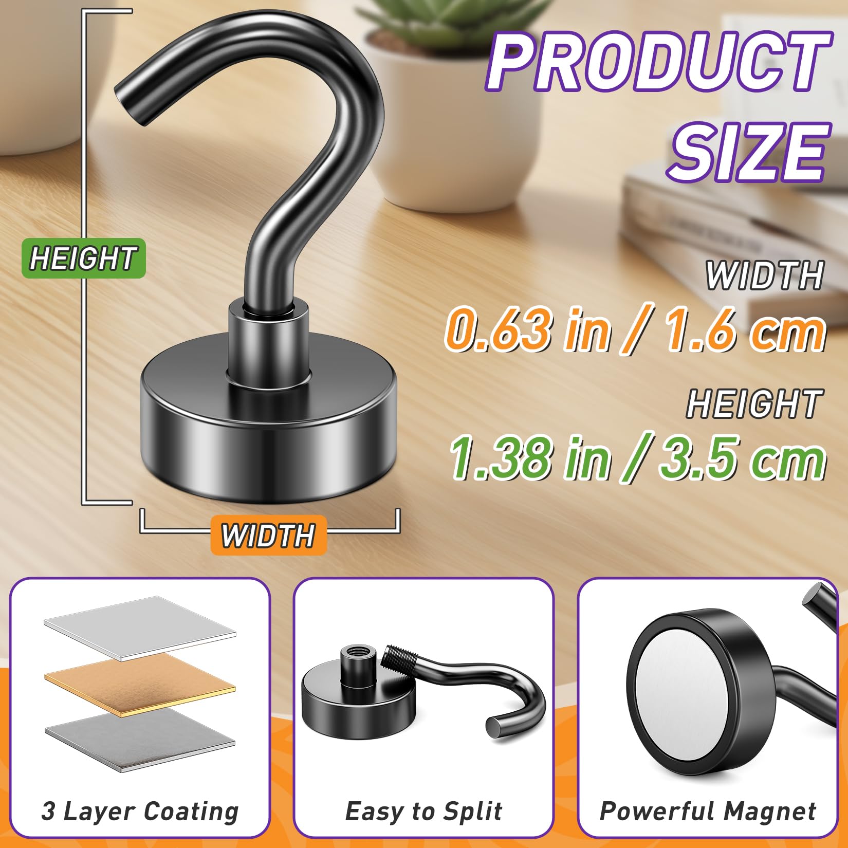 - Magnetic Hooks for Long-term Use: Designed for unmatched strength and reliability, our heavy duty magnetic hook offer exceptional magnetic force. With a premium triple-layer Ni-Cu-Ni coating, they resist corrosion and scratches, maintaining a rust-free finish for years. Perfect for securely hanging items, these hooks provide a sophisticated, long-lasting solution for any environment.