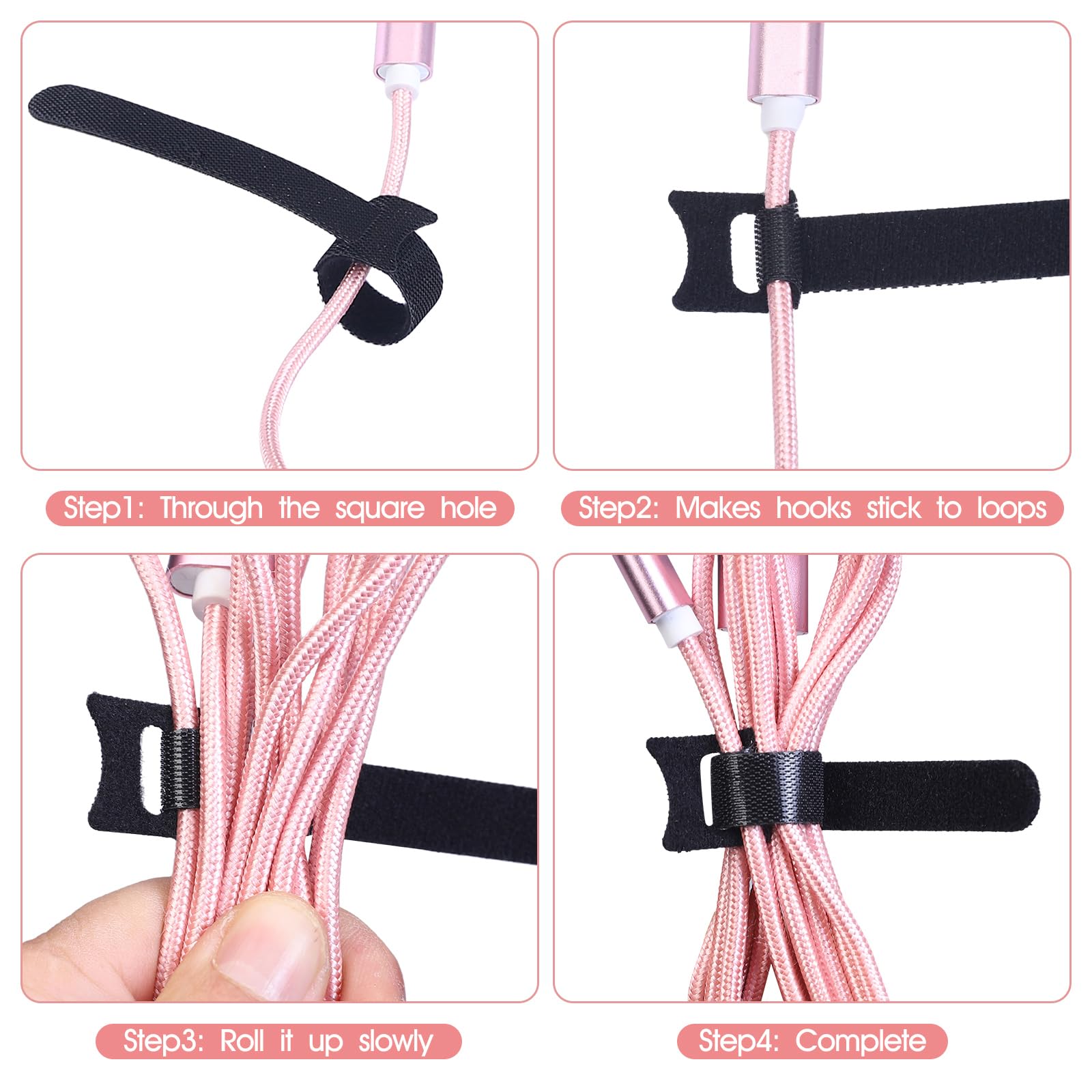 - High quality: The cable straps are made of high quality fabric material. The cable ties have hooks and clasp. These don't damage or cut into items, and they allow for easy adjustments if needed