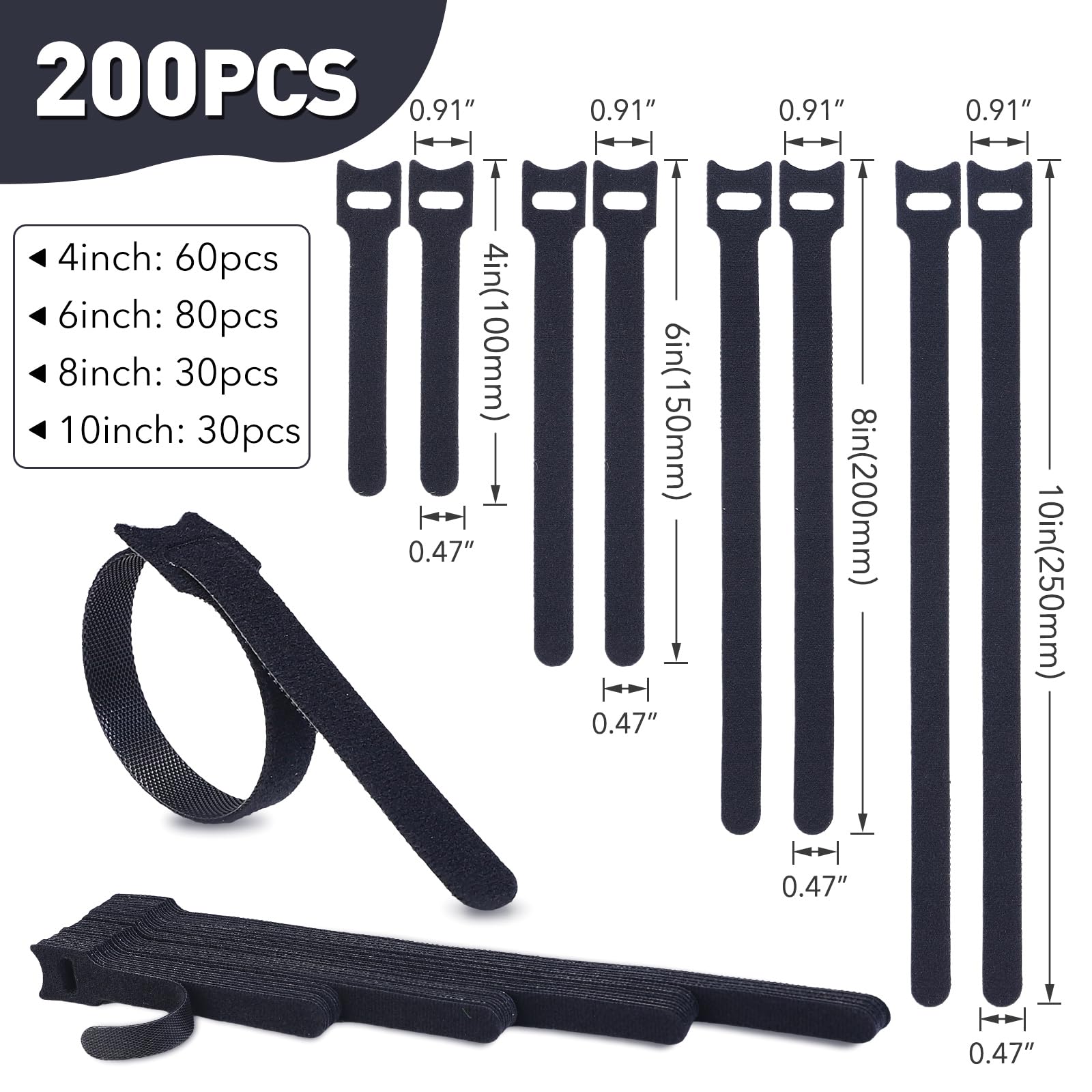- Set Contains: Our set includes 200 pieces Cable ties in multiple sizes- 60 pieces of 4-inch, 80 pieces of 6-inch, 30 pieces of 8-inch, and 30 pieces of 10-inch, providing you with the perfect selection to suit various items