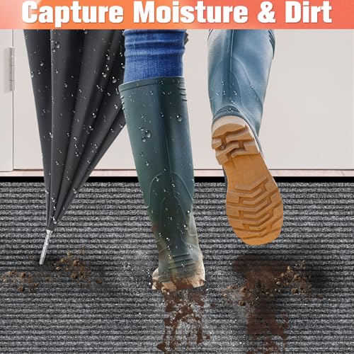 MYFAMIREA Commercial Floor Mat 2' x 3' Extra Large Front Door Industrial Rug Heavy Duty Brush Step Entrance Mat Weather Utility Rug with Non Slip Rubber Backing Low Profile for Entryway, Charcoal Grey