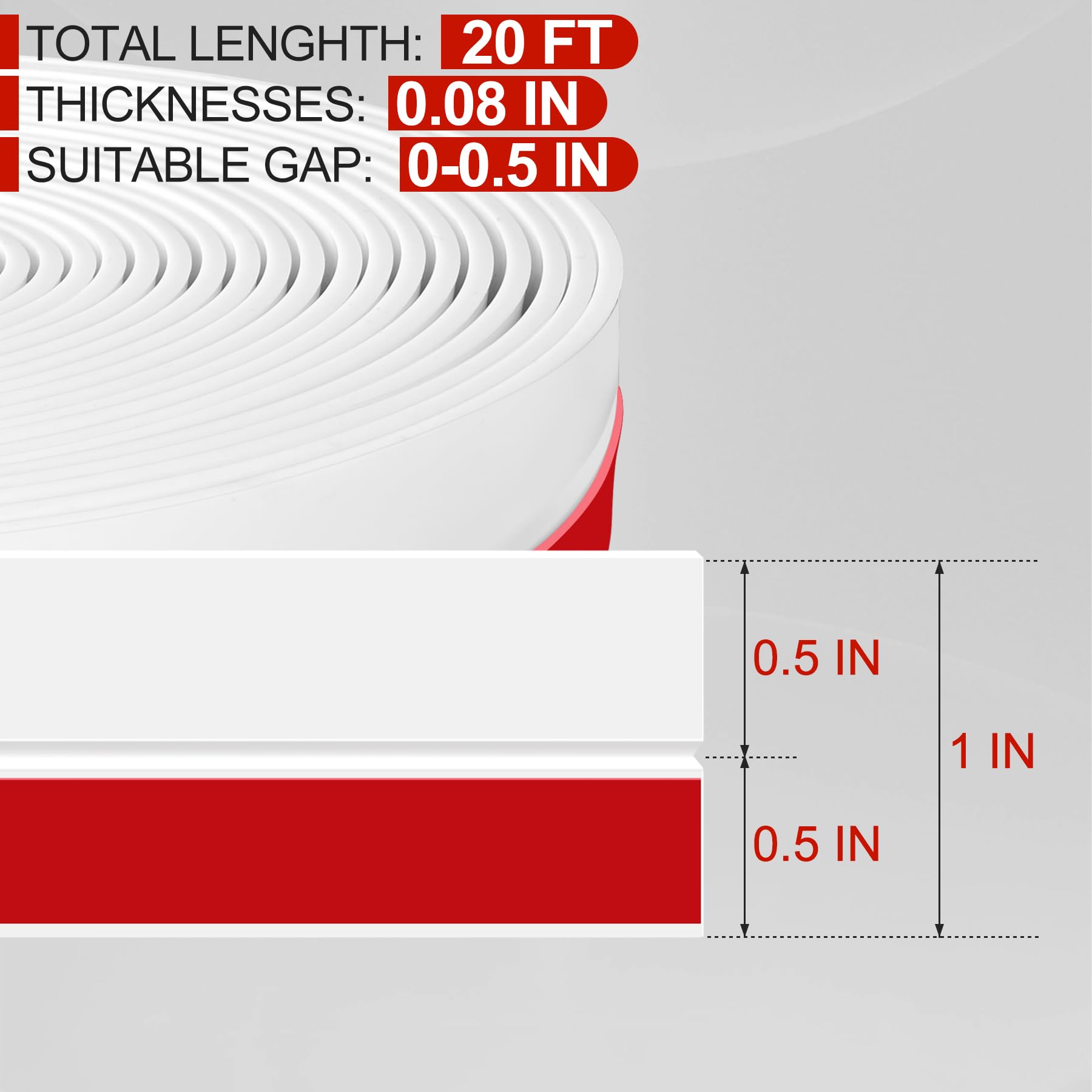 MYFAMIREA Door Weather Stripping 1IN (W) x 20FT (L) Door Draft Stopper Seal Tape Silicone Seal Strip Self Adhesive Shower Sweep Insulation Tape Side Bottom Strip for Sliding Glass Window Gap, White